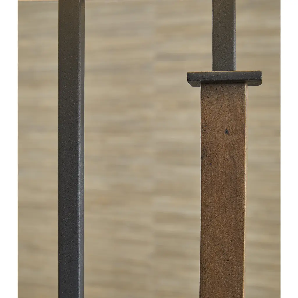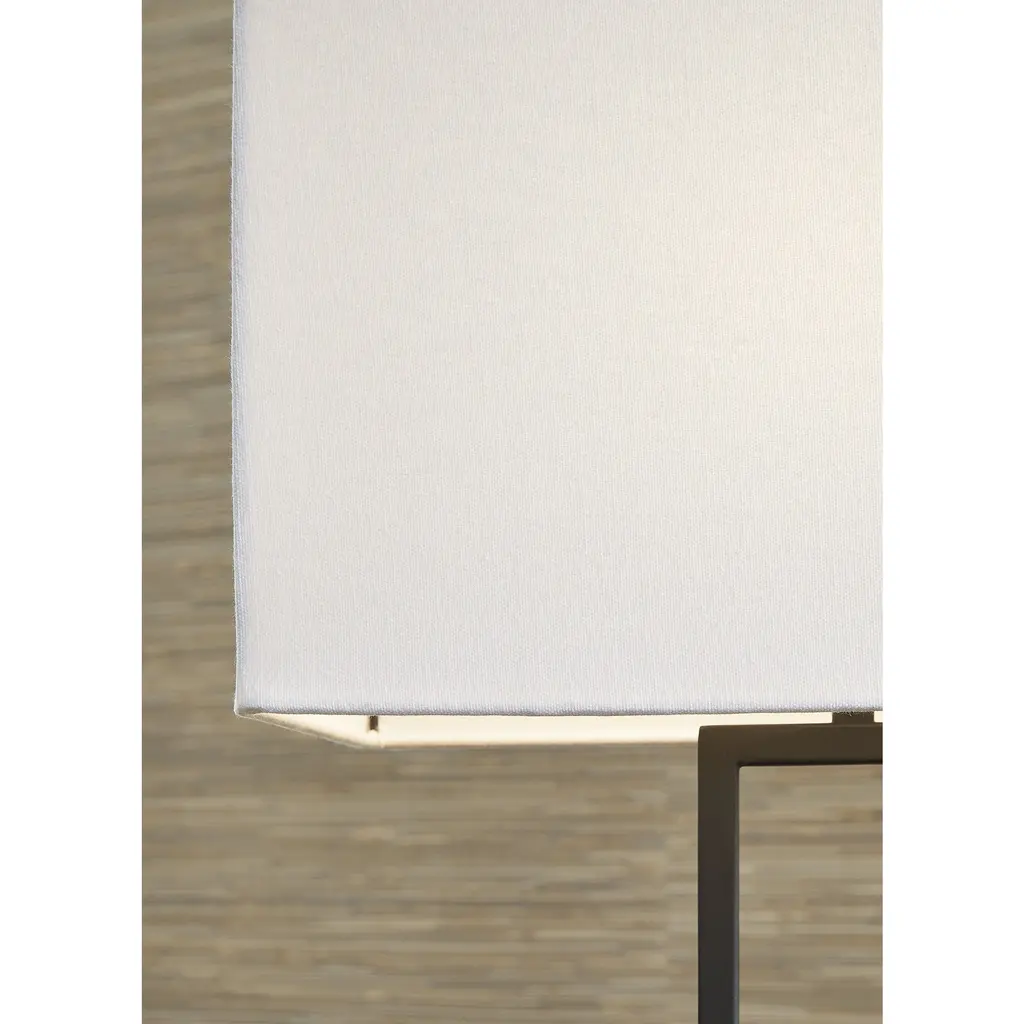 Illuminate your style with this table lamp. Its sleek geometric design, finished in black and brown, adds a designer touch to your abode. The contrasting white shade diffuses light for a soft artistic ambiance.Features:Made of metal and wood with rectangle hardback fabric shadeBlack and brown finishDue to the use of natural materials, some variations may occur3-way switch1 E26 socket, type A bulb recommended (not included); 100 watts max or CFL 23 watts max; UL ListedAssembly required