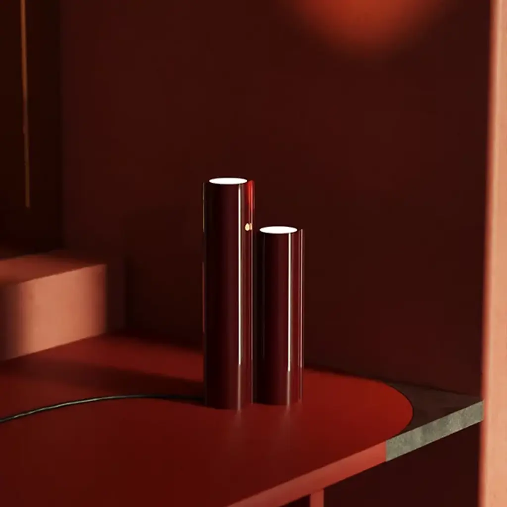 The Silo 2TF LED Table Lamp from Lambert & Fils brings an ultra-modern, minimalist design to any flat surface. Inspired by the cylindrical shape of grain silos, it features one large and one small cylinder made of extruded aluminum and housing strong, damp-listed LED lamping within. Powered by a vinyl cord, the lamp's light is diffused through circular polycarbonate lenses, creating a warm, even glow. The light highlights the round forms, highlighting the lamp's iconic silhouette.