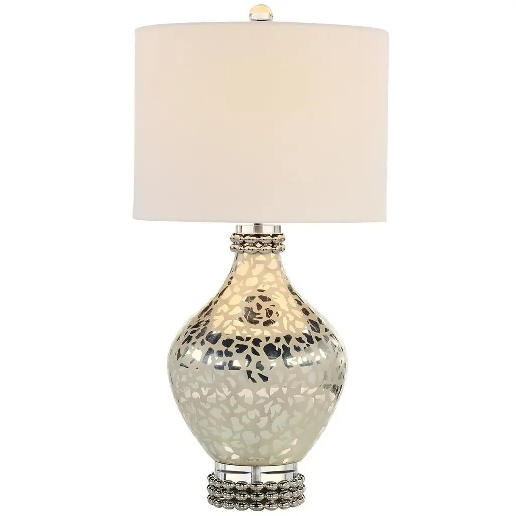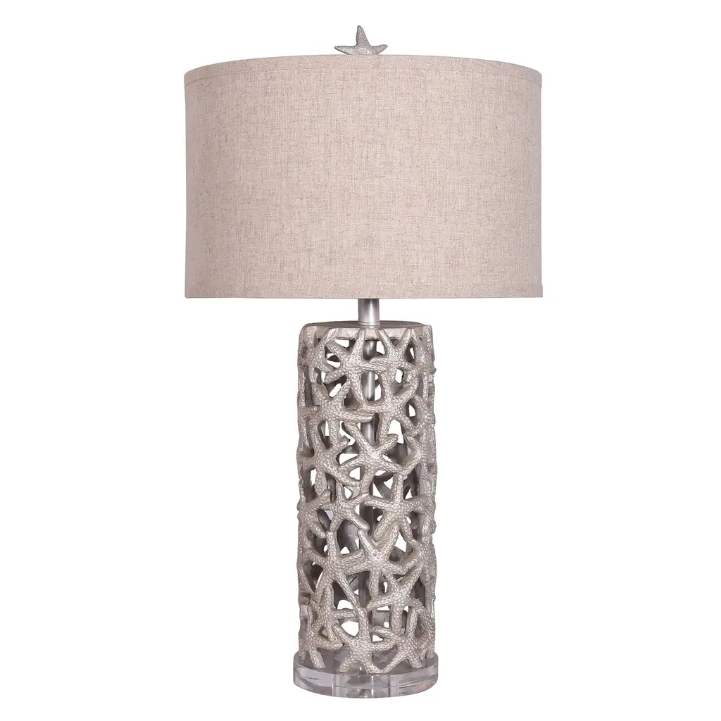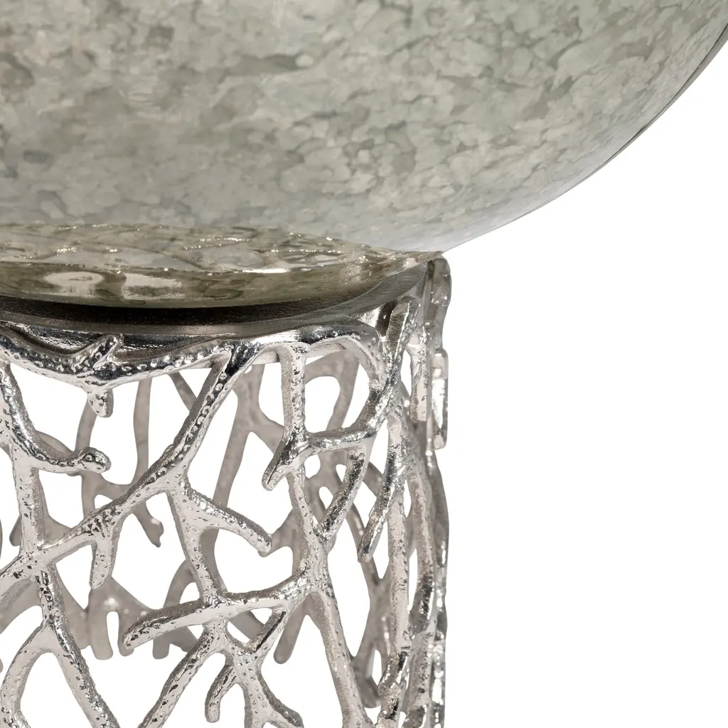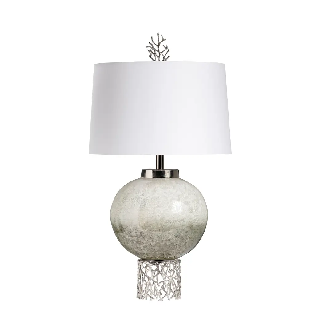 Bring the beauty of the coast into your home with the elegant Coral Table Lamp. Standing 34 inches tall, this stunning lamp features frosted glass and a striking silver coral finish that captures the essence of seaside charm. Topped with a crisp white linen shade, it is crowned by a decorative silver coral finial, adding a unique touch of sophistication.Whether showcased as a standalone piece or paired with the matching Coral Candle Holders and Coral Bowl, this lamp adds a refined coastal flair to any room. Perfect for living spaces, bedrooms, or entryways, the Coral Table Lamp is both functional and decorative, casting a warm and inviting glow in your home.