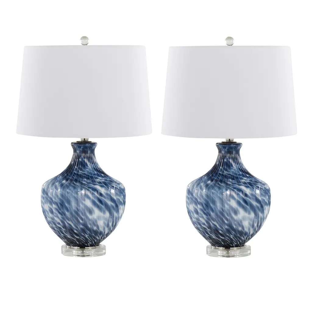 Silver Orchid Fizza 27" Glass Table Lamp (Set Of 2) - Blue Glass/white Linen