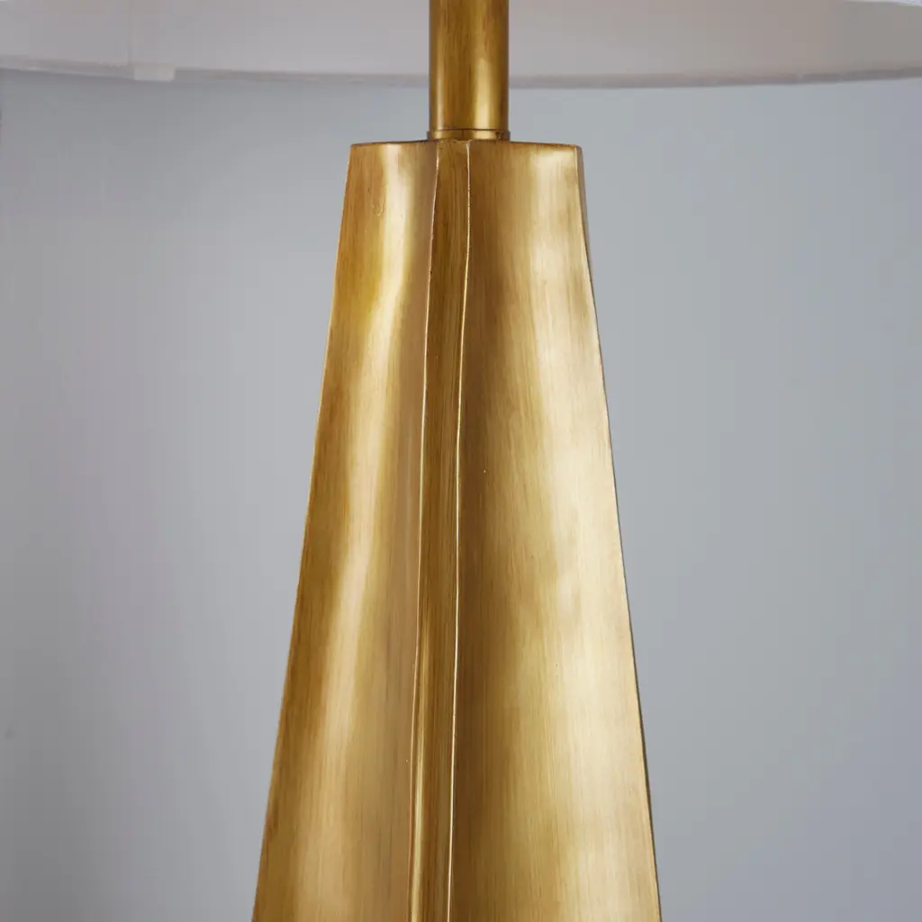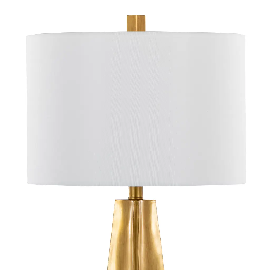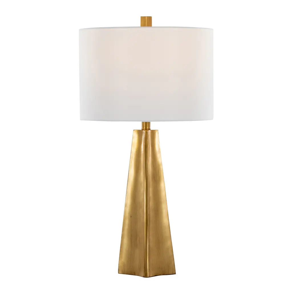 Elevate your decor with the Pembrooke Table Lamp. Featuring a striking gold polyresin base shaped like a pyramid, this lamp captures a sense of opulence and architectural flair. Topped with a crisp white linen shade, it casts a warm, inviting glow that complements its luxurious design. Infuse your space with a touch of timeless sophistication and let this lamp be the centerpiece of your home.Features:Dimensions:
