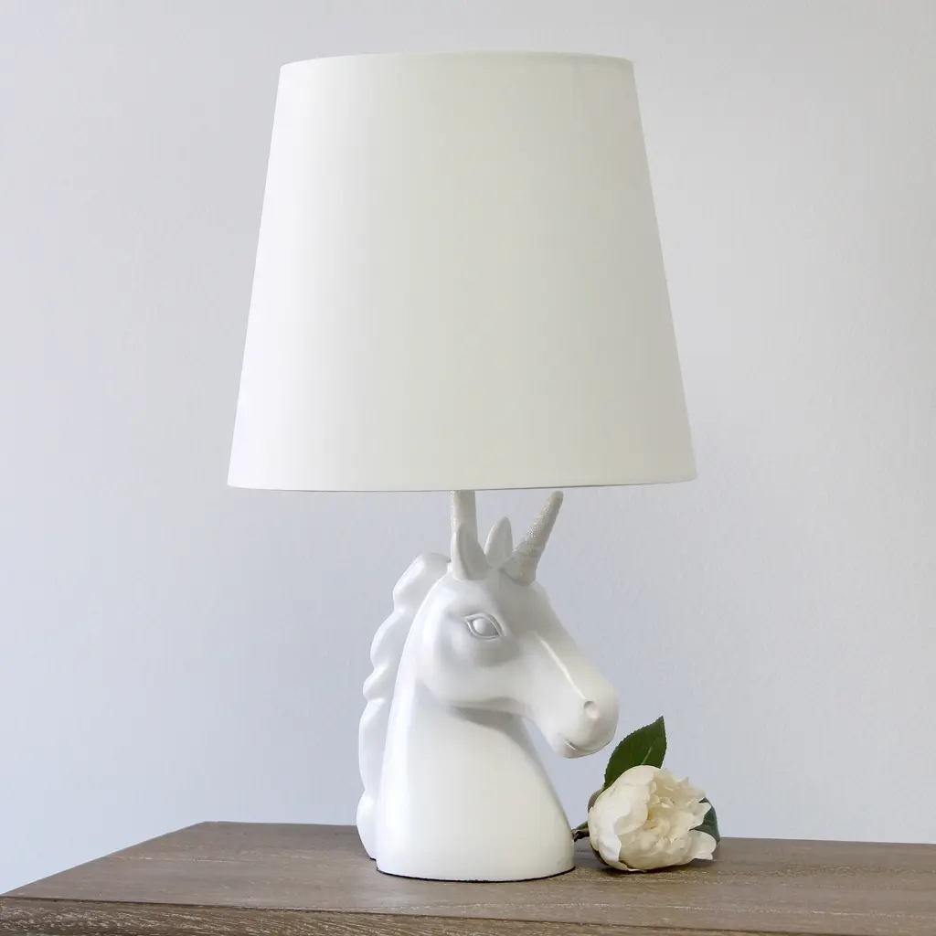 Add a touch of personality to your décor with this fun unicorn lamp! With a white resin base and touches of shimmering blue glitter this lamp is sure to illuminate any room in style. Perfect for bedrooms, kids and teens, college dorms or nurseries!