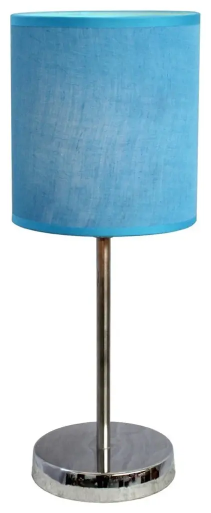 Simple Designs Chrome Mini Basic Table Lamp with Fabric Shade. A lovely, inexpensive, and practical table lamp to meet your basic fashion lighting needs. This mini lamp features a chrome base and fabric shade. Perfect for living room, bedroom, office, kids room, or college dorm! Fabric shade Mini chrome base. Perfect for living room, bedroom, office, kids room, or college dorm. Height: 11.8" Shade diameter: 5.5". Uses 1 x 40W type B E12 Candelabra Base bulb (not included).- A lovely, inexpensive, and practical table lamp - Chrome base and fabric shade- Perfect for living room, bedroom, office, kids room, or college dorm!- Height: 11.8" Shade diameter: 5.5"- Uses 1 x 40W type B, Candelabra Base bulb (not included)