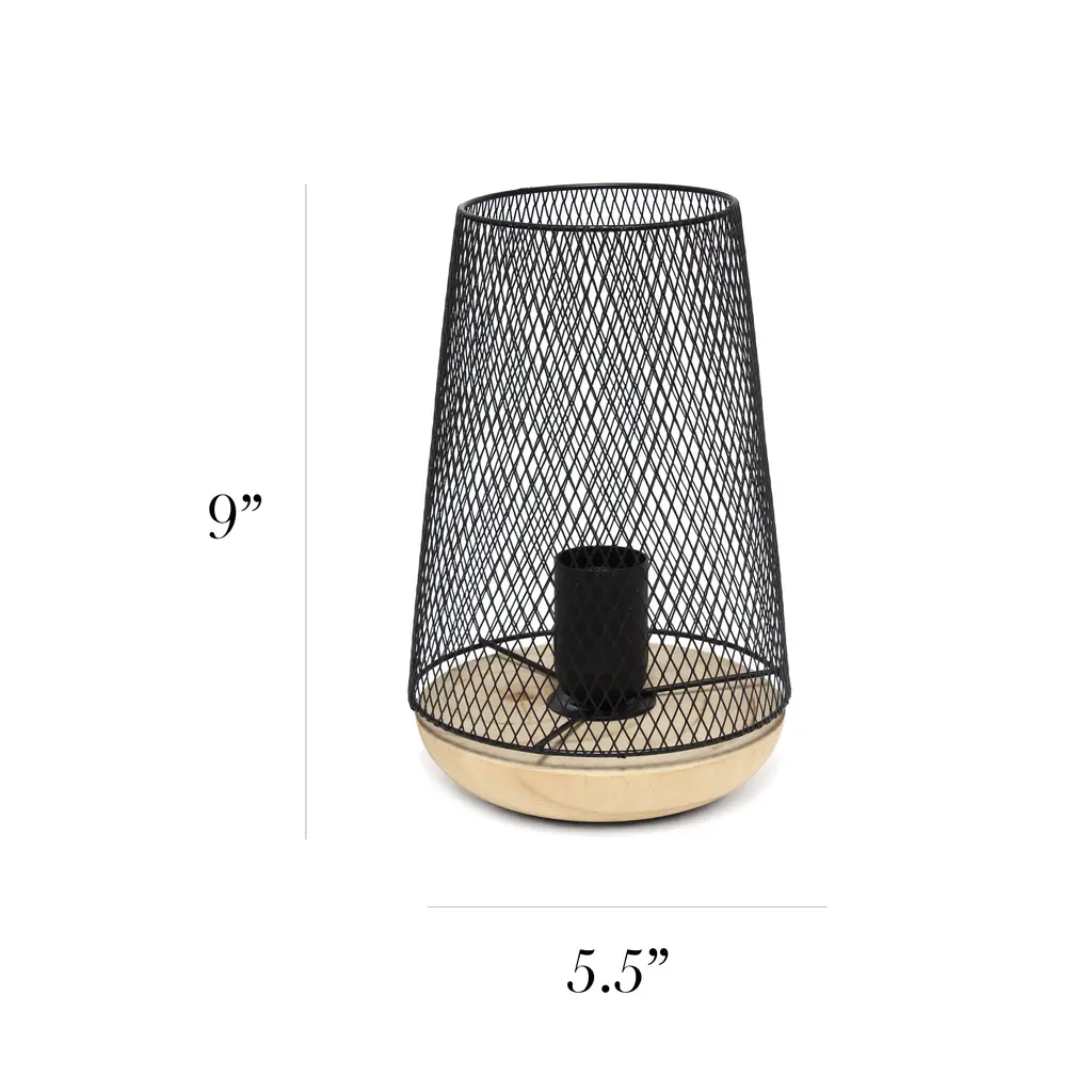 This metal table lamp with mesh shade will add ambiance and style to any room in your home! With a simple, lattice cut out design and natural wood base this lamp illuminates beautifully. Undoubtedly the perfect accent piece to your home, this industrial lamp will not disappoint! **HELPFUL TIP: To get the complete vintage look, we recommend using a decorative Edison/Vintage bulb (not included). **