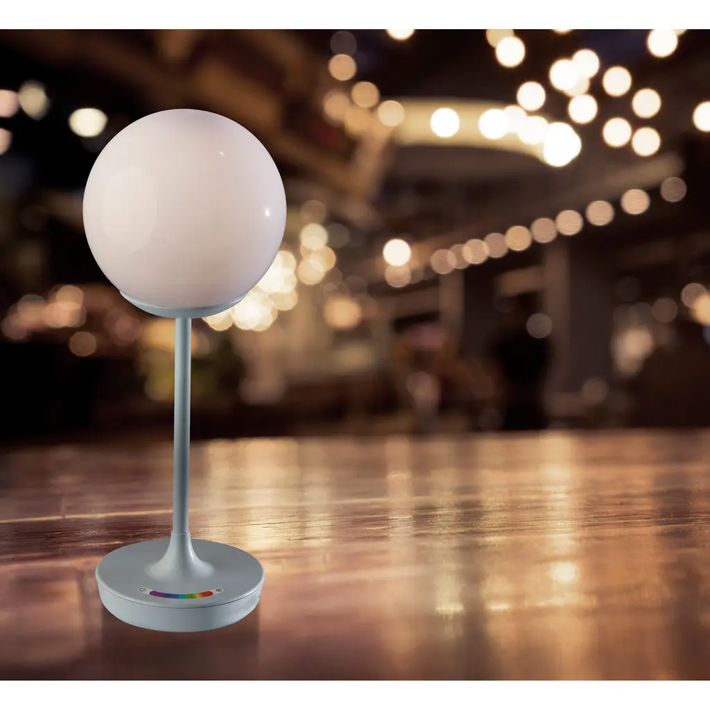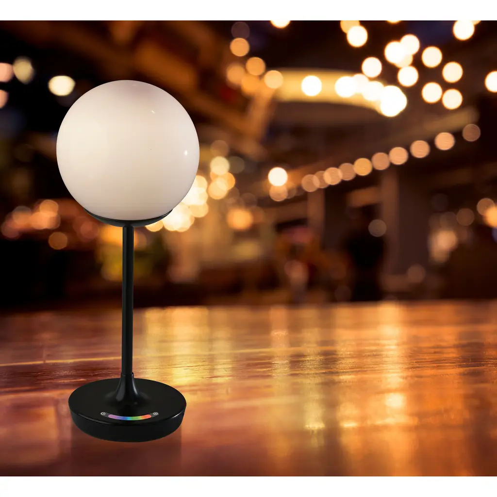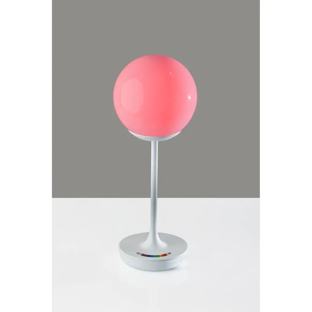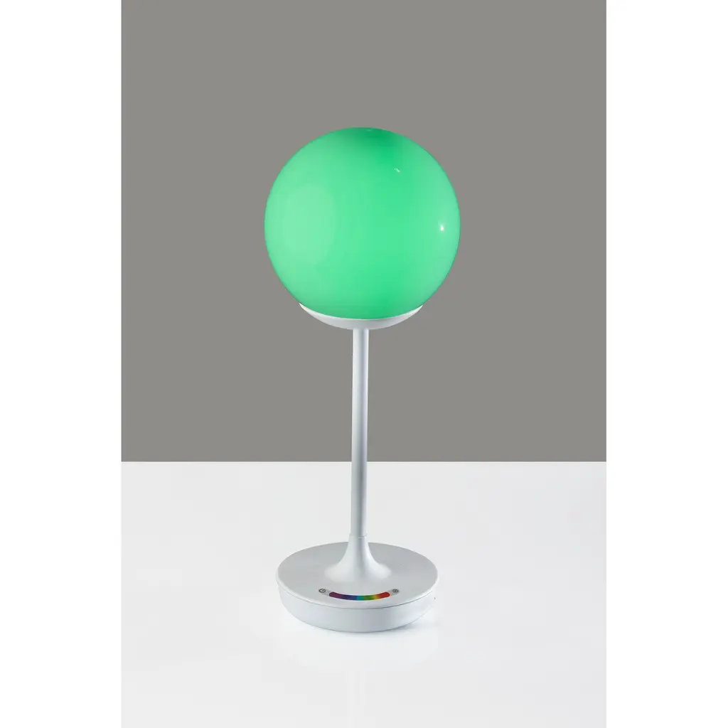 The Millie LED color changing table lamp is both versatile and fun. Place this in the bedroom as a nightlight or bring it outside for outdoor mood lighting. With a 39" USB charging cord, it's simple to charge up to carry with you wherever it's needed. Offering three levels of regular white light and a wide range of colored light options on a convenient touch bar switch, this lamp is sure to satisfy your needs. With an outdoor certification for damp locations, this is the perfect addition to your backyard or camping setup. This lamp reaches a full charge after charging for about 2-3 hours, and the battery lasts for a minimum of 5 hours. This lamp is available in black and white finishes and coordinates perfectly with the Millie LED color changing table lantern. Features: White or Black Finish Rechargeable with a 39" USB Charging Cord - charge lasts for minimum of 5 hours Outdoor certified for damp locations Use the touch bar RGB switch to change the color of the light A touch dimmer switch allows for 3 levels or warm, white light ETL Listed li> CRI: 80; Color Temp: 3,000K; 150 Lumens 1-Year Limited Manufacturer Warranty Measurements: Height: 15.25-inch Width: 6-inches Extension/Depth: 6-inch Weight: 1.04lbs Shade Dimensions: 6" Dia Base Dimensions: 5" Dia. X 1"H.