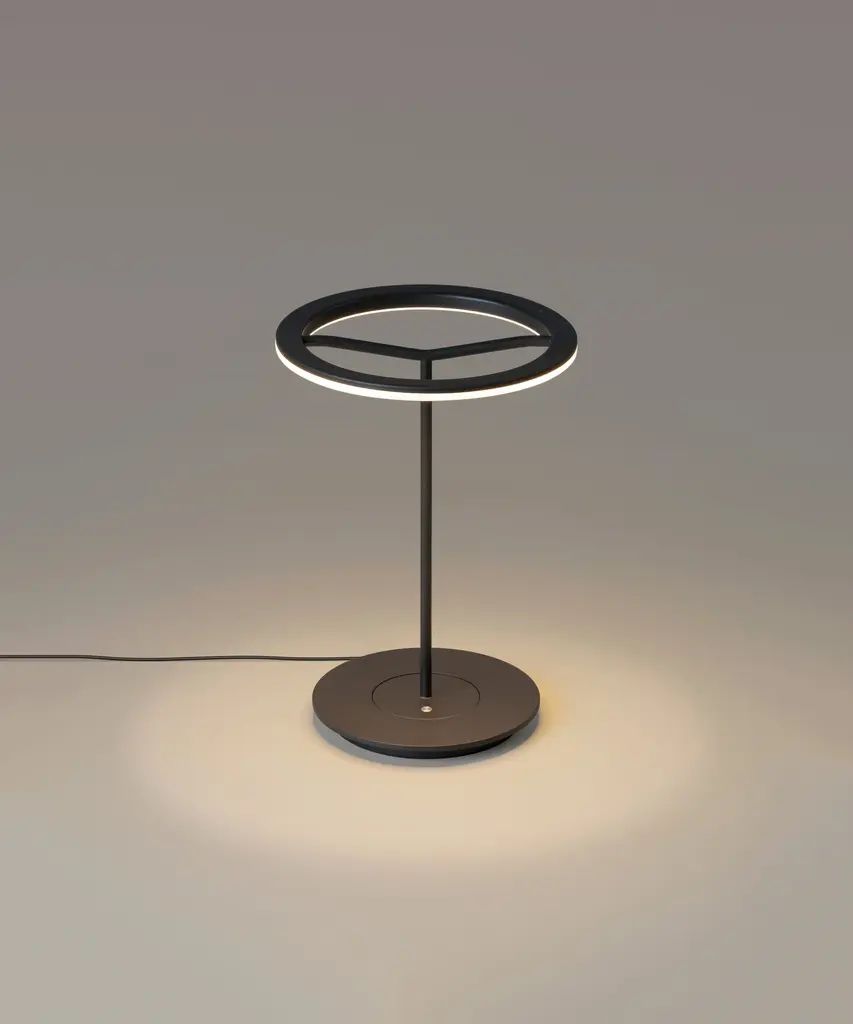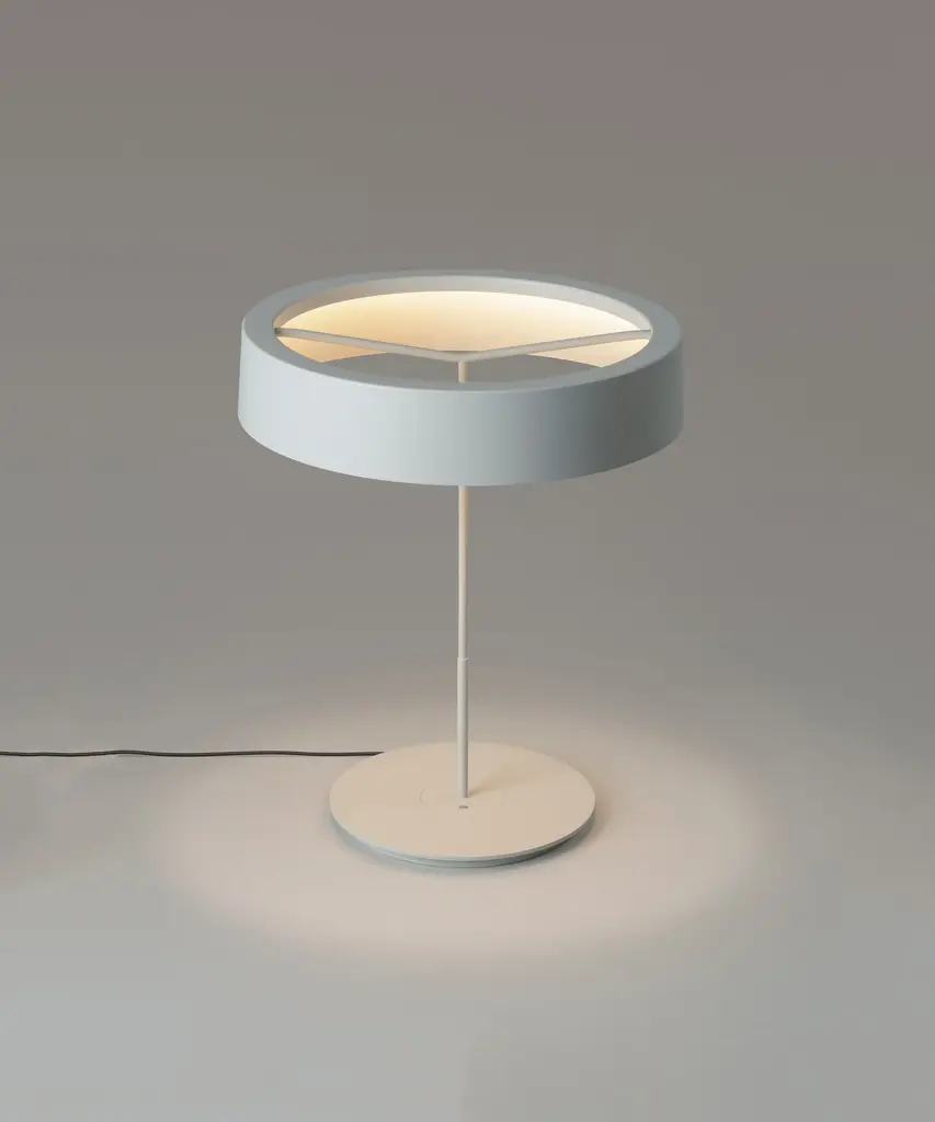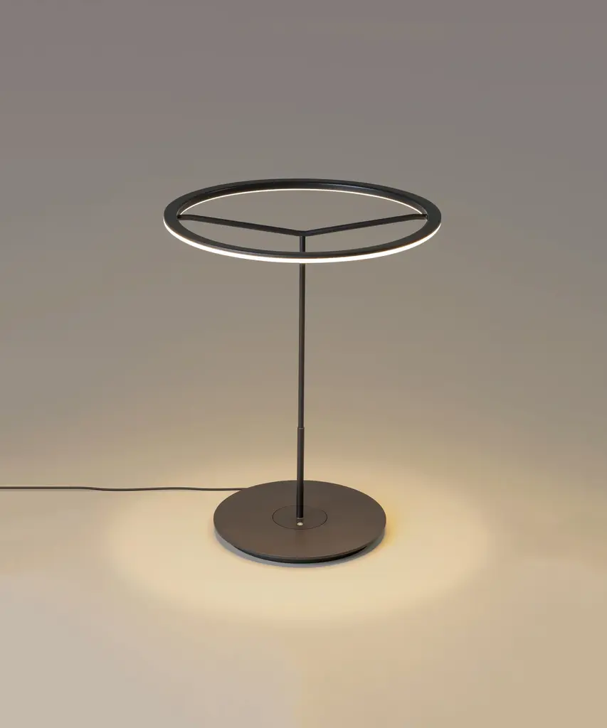 A lamp that combines simplicity and technology to create a lucent ring of light suspended in the air. It comes in two sizes, both available in matte white or graphite, to which a shade can be affixed. Or they can be left without a shade, unapologetic. Sin broadly illuminates any work surface with direct, warm light, and does not take up space on a desk because all kinds of errant items can be kept on its base, including papers. Produced by the Barcelona-based lighting purveyor, Santa & Cole.
