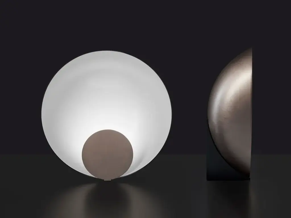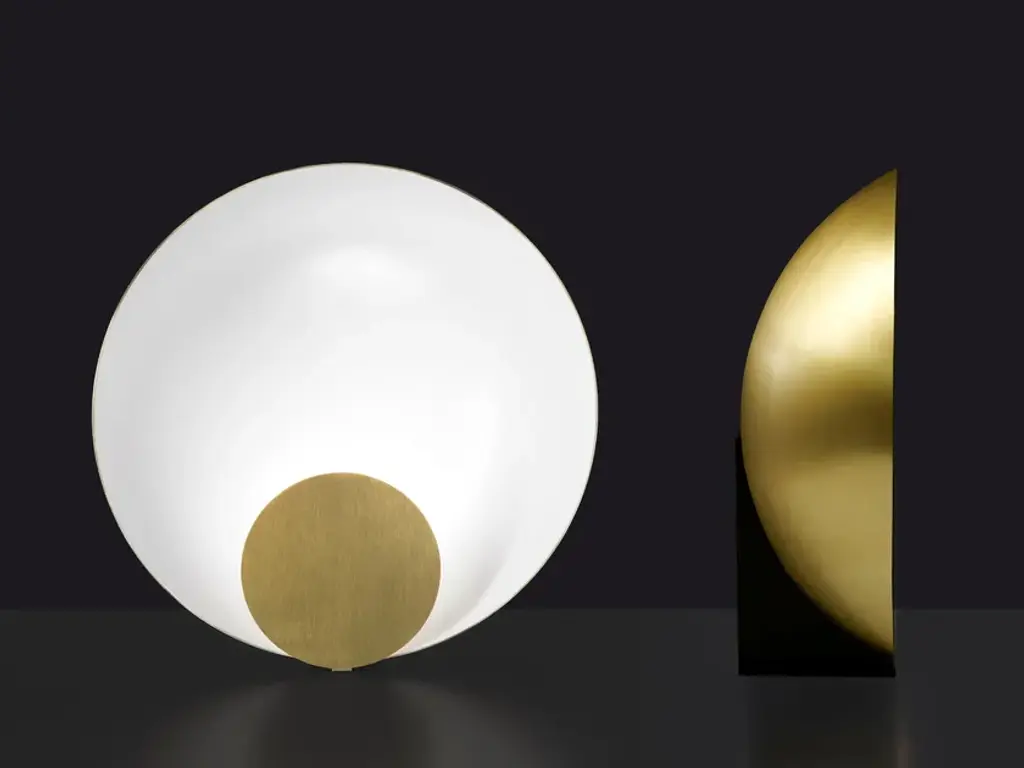 Marta Perla has designed Siro, a semi-spherical table lamp with a disc at the front releasing in its interior an oblique light thanks to the slim LED light source. Seen from the front, Siro appears to consist of two two dimensional elements, giving the illusion of being perfectly balanced on a surface.It takes its name from the necessity, so typical of man, to search in celestial movements, possible links between one's own past and cosmic phenomena. Hence Siro, deriving from Sirius, the brightest white star in the night sky.Siro comes in two sizes and two finishes: satin bronze or satin gold, with the interior of the sphere in white, heightening the contrast in colour in a simple, graphic way.287dimmer1 x max 9W (LED) 2700°K 1300 lm CRI>90288dimmer1 x max 13W (LED)2700°K 1875 lm CRI>90matt black / satin gold - satin bronze
