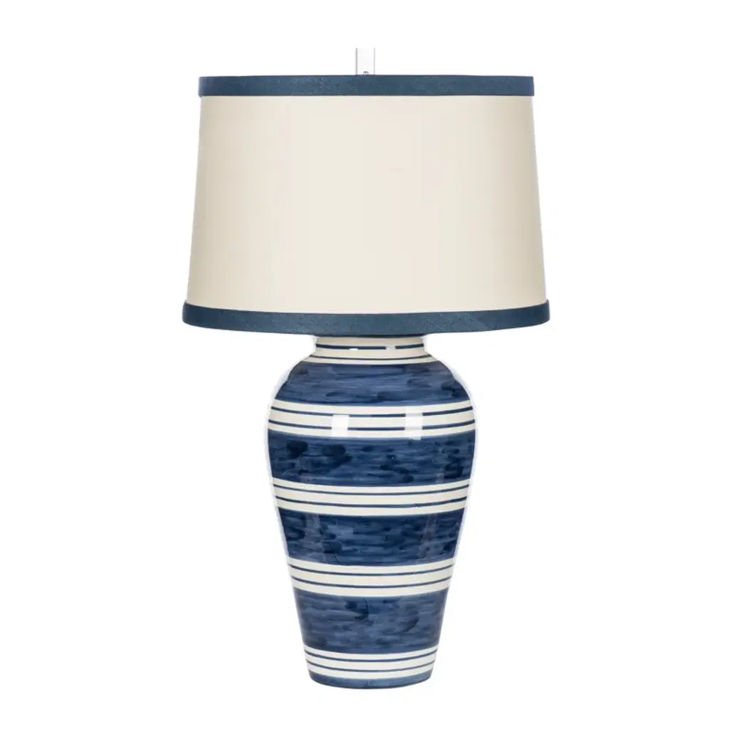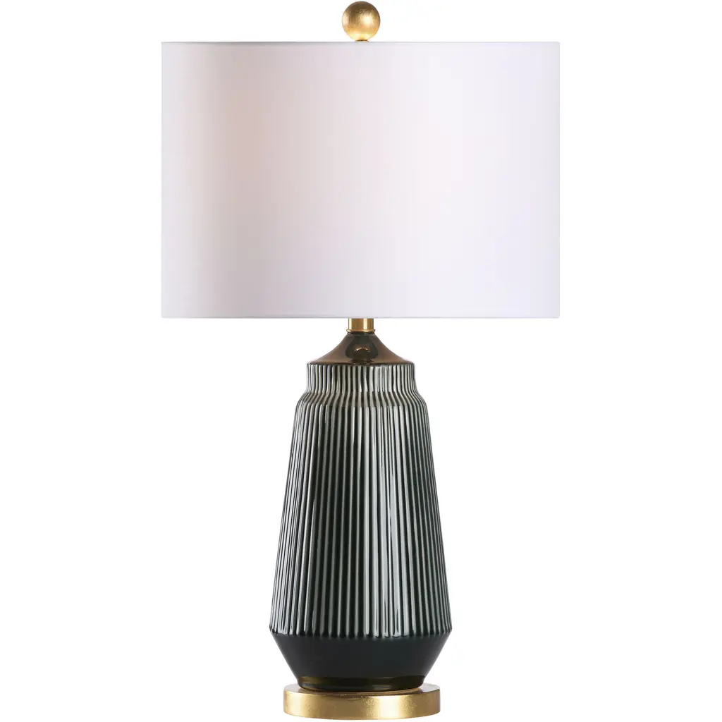 Small Bedside Lamp In Heather Gray Ceramic With Wood Accents.