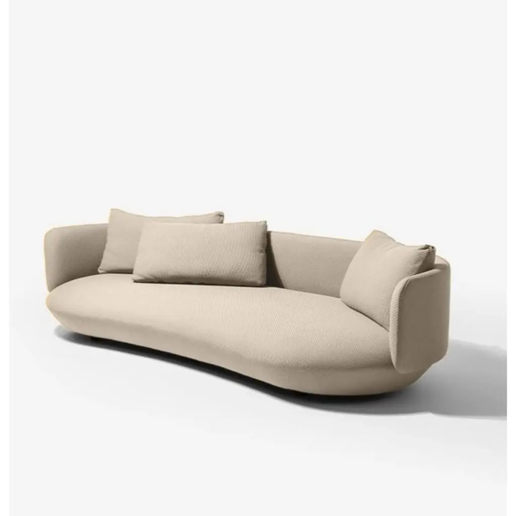 Small Baixo Sofa by WentzDimensions: D 105 x W 200 x H 58 cmMaterials: Wood, Upholstery.2 cushions includedThe Baixo sofa proposes a different way of sitting. An invitation to casual comfort, closer to the ground. The organic structure is highlighted by the coating with exclusiveWE— KNIT technology — 3D mesh made from recycled PET — which allows the purity of shapes through a seamless surface.Upholstered sofa with wooden structure, multi-laminate, elastic straps and foam. Exclusive WE–KNIT coating (100% Recycled PET). Feet in solid wood with matte black paint. They come with cushions with the same finish as the sofa.WENTZSILENT AND NATURAL LIVING DESIGNED IN BRAZILBrazilian brand of furniture, lighting and accessories design.We live in silence, contemplating the environments, through pieces that welcome well-being. We seek to give naturalness to living, with harmonic and sensorial simplicities. We express Brazilian uniqueness through our lines, highlighting local materials and technologies.With a contemporary tropical aesthetic, designer Guilherme Wentz's creations reflect the contemplative personality of their creator, connected to nature and obsessed with design. His designs present a new look at living, where each piece conveys a perfect balance between simplicity and functionality.1987 — Guilherme Wentz is born on July 17, in the city of Caxias do Sul, in Rio Grande do Sul, where he spent his entire youth.2008 — Guilherme drops out of the Business Administration course to start a new creative life studying Product Design.2010 — Begins his career as a designer at the Riva objects brand, where he works for two years.2012 — Recently graduated, receives the IDEA Brasil award for his first product on the market, the Officer desk, developed for the São Paulo brand Decameron.2013 — Receives the iF Design Award for his second signed project, the K for Riva Collection, sets up his studio and starts designing for different brands of furniture, lamps and objects.2014 — Moves the studio to São Paulo, takes on the Style Directorship of the Decameron and Carbono brands and is invited to a project commissioned by the São Paulo Museum of Modern Art.2016 — Joins businessman Rafael Gehrke to launch his first independent collection, called "Capítulo 1", which in its first year was already available in some of the main designer stores in Brazil and the United States. In the same year he was named "Rising Talent" by Maison & Objet Americas and received the Museu da Casa Brasileira and iF Design Awards, both for Luminária UM, developed for Lumini.2017 — Named "Rising Talent" at the Casa Vogue Awards. One of his projects, the Post-Tropical Vase , is acquired for the permanent collection of the Lisbon Design and Fashion Museum.2018 — Wentz is named by the New York Times T Magazine as one of the "6 Rising Studios of the Americas."2019 — The WENTZ brand is established for the production and distribution of independent collections and the launch takes place during New York Design Week. In August, the brand's first store opens in São Paulo.