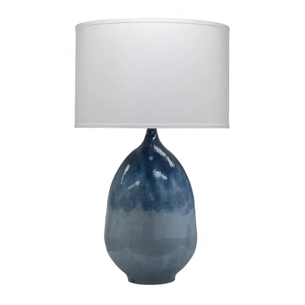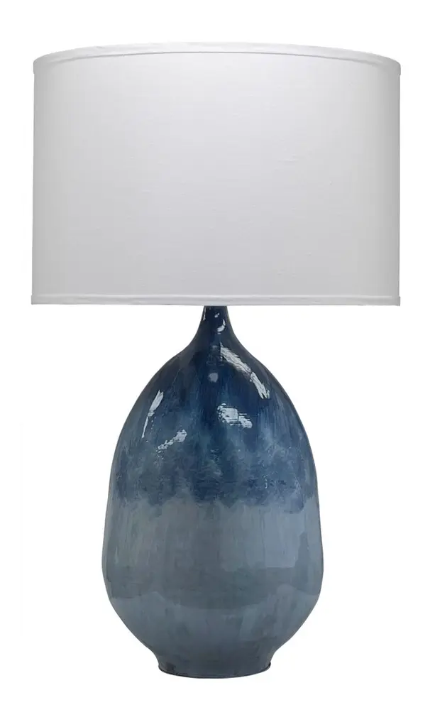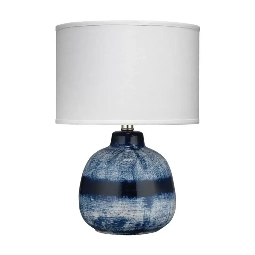 Inspired by Japanese ceramics, this lamp is a stunning ceramic accent that features a deep indigo reactive glaze that results in unique color variations for a one-of-a kind piece. Topped with a linen shade, this accent is great for today''s updated coastal aesthetic. Handmade of ceramic100% Linen White Drum ShadeReactive Glaze makes each piece distinct from the nextMatching Resin Ball FinialThe handcrafted nature of ceramic creates products with character and individuality. The inherent variations in tone or texture, are preserved, to create pieces rich in detail and natural beauty. These unique imperfections and variations are what define our products, with each piece having its own personality. Lamp Dimensions: 9.25"H x 8"W x 8"D''shade Dimensions: 8.5"H x 12"W x 12"D1 bulb required; Bulb Not Included60 Max Wattage; 120 VoltsE26 Bulb Base Type 8 Ft Clear Cord1-way SwitchCare Instructions: We do not recommend using harsh or abrasive cleaners at any time as they can damage product. Wipe surfaces gently with soft, dry cloth. If needed, you may use a lightly damp cloth with water only on base.