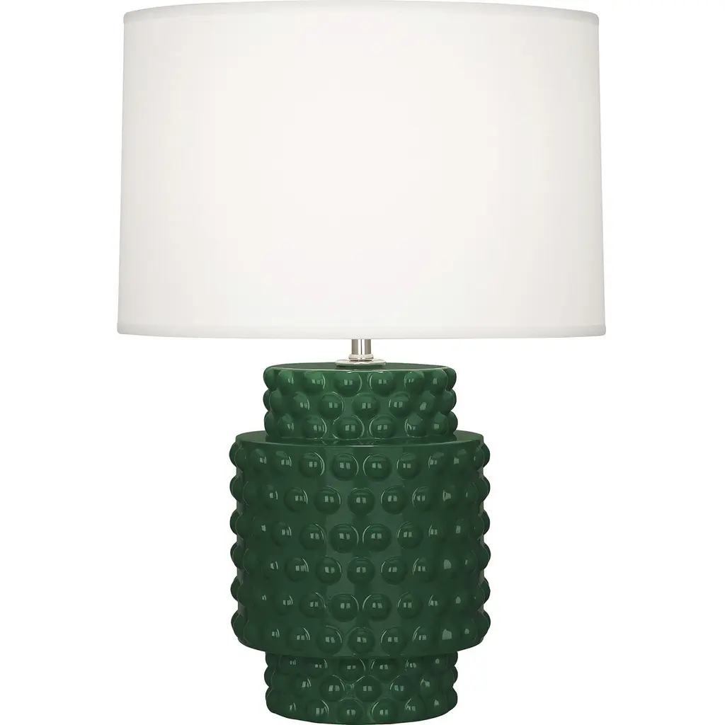 Cobalt Glazed Textured Ceramic Dolly Accent Lamp With Fondine Fabric Shade - Our Dolly table lamps are a great choice for adding visual appeal with a raised circle pattern adorning the ceramic body. You can't go wrong lighting your space with this modern twist on a classic shape.