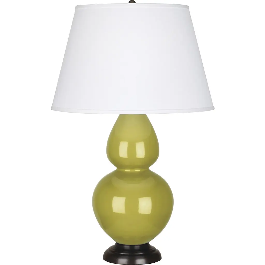 Jungle Glazed Ceramic With Deep Patina Bronze Finished Accents Small Double Gourd Accent Lamp With Pearl Dupioni Fabric Shade - Our Double Gourd collection features a simple but gracefully curving silhouette. Available in a wide array of vibrant colors and several different base finishes.
