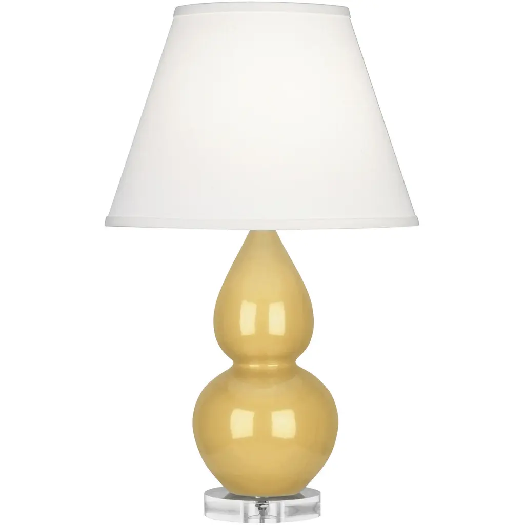 Ash Glazed Ceramic With Lucite Base Small Double Gourd Accent Lamp With Pearl Dupioni Fabric Shade - Our Double Gourd collection features a simple but gracefully curving silhouette. Available in a wide array of vibrant colors and several different base finishes.