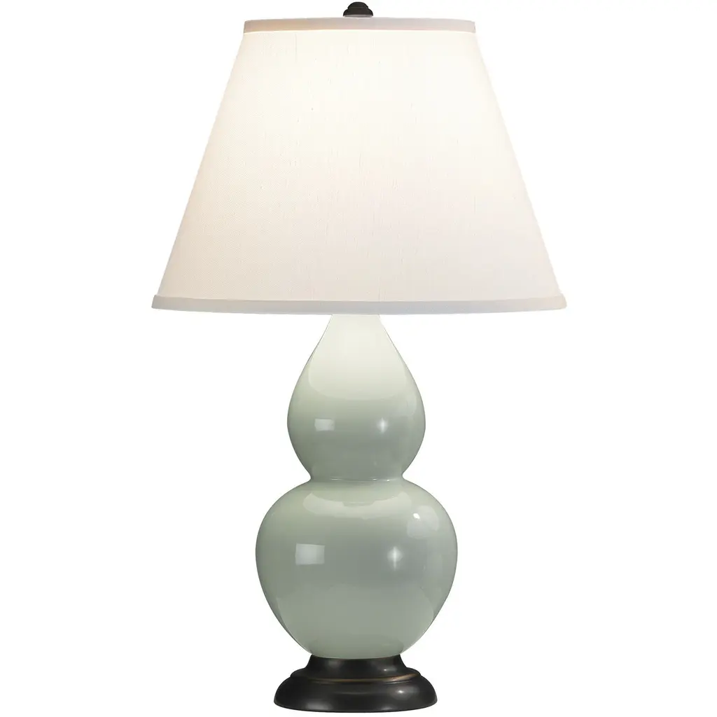 Jungle Glazed Ceramic With Lucite Base Small Double Gourd Accent Lamp With Pearl Dupioni Fabric Shade - Our Double Gourd collection features a simple but gracefully curving silhouette. Available in a wide array of vibrant colors and several different base finishes.