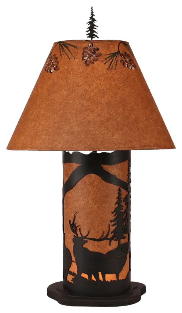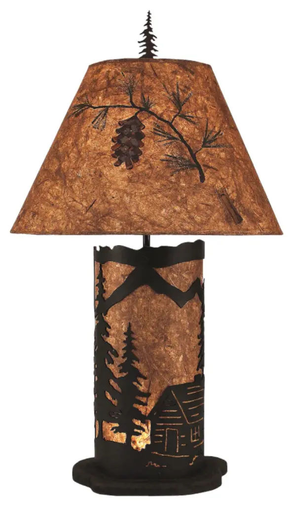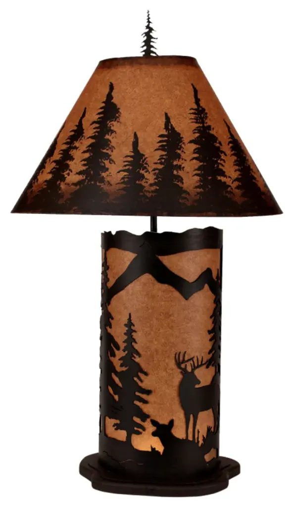 Small Kodiak And Forest Green Mountain Scene Table Lamp With Nightlight
