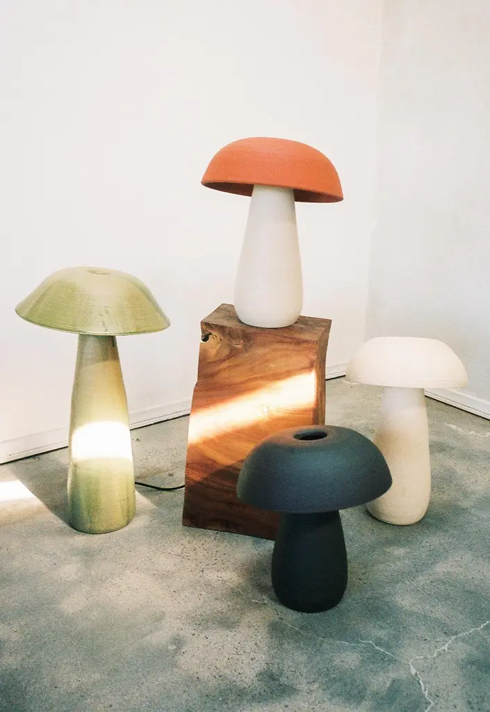 Small Mushroom Lamp by Nick PourfardDimensions: Ø 33 x H 38 cm.Materials: ceramic.Different finishes available. Please contact us.All our lamps can be wired according to each country. If sold to the USA it will be wired for the USA for instance.Designed with the intention of creating a light that is multi-directional within its own form and functions without additional hardware.A hand-thrown ceramic lamp that is comprised of two pieces. Using a ball joint design, the upper rests on the base allowing for movement of the light in any direction. This helps the user shift the shade as needed, creating an experience that is both functional and intimate.Like all handmade pieces there is natural variation in the clay, firing, and shape. No two items are exact matches, please consider this when ordering.Nicholas Bijan Pourfard is a furniture and lighting designer based in Southern California. Pourfard is completely self-taught in woodworking and machining, though he double-majored in industrial design and business marketing at San Francisco State University. He’s been building furniture and lighting for himself but only started promoting it this past year. Furniture design has its parameters, of course, but it’s allowed Pourfard to contrast the precision of measurement and the patterns of math with something more loose — organic shapes offset by angularity, like his Bloop lighting, where plump handblown glass blobs glow and rest on a base of geometric steel. There’s something companionable, a kind of friendly quality, to his pieces, whether it’s the warmth of his ceramic Mushroom lamps or his Box chairs, which despite the rigor of their form, still invite you to sit.