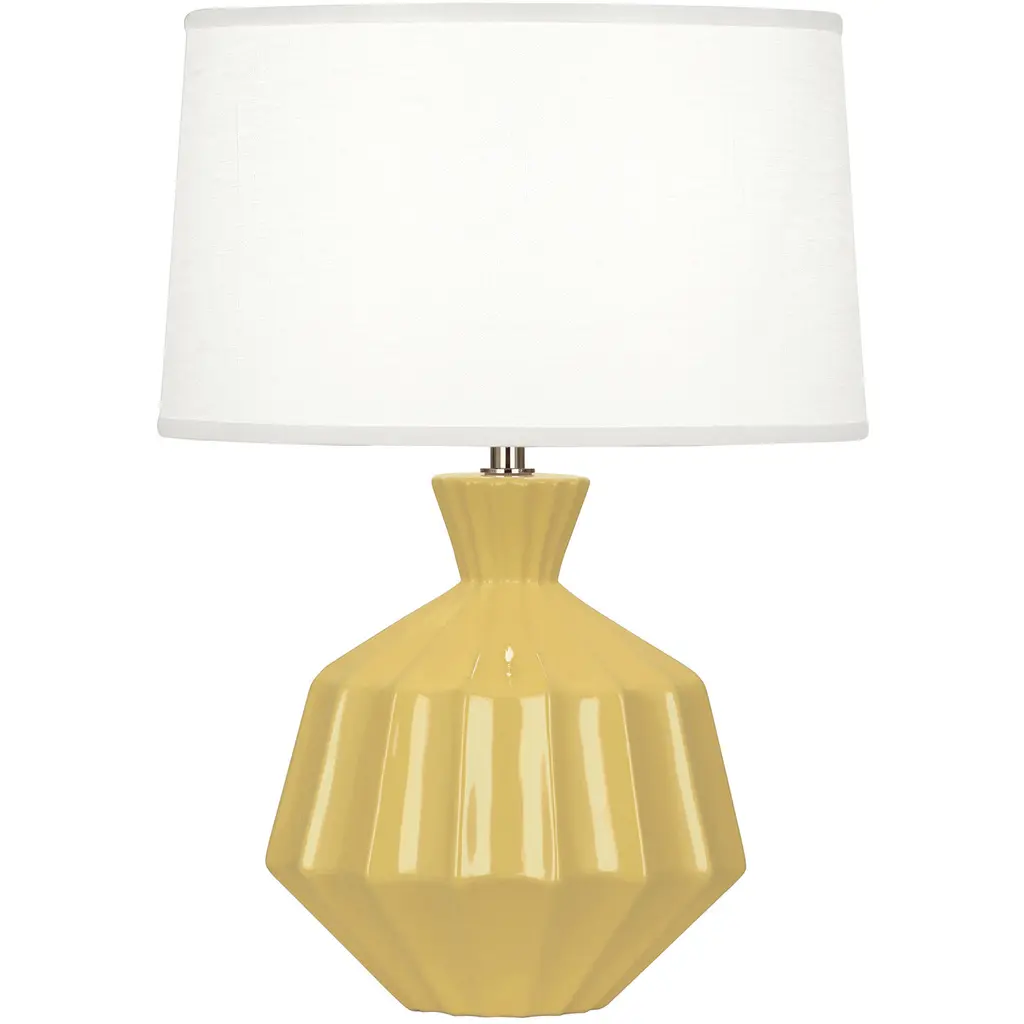 Orion is a unique collection with a scalloped design that is chic and charismatic. We love how the light plays off its peaks and valleys. - Jungle Glazed Ceramic Orion Accent Lamp With Oyster Linen Shade with Self Fabric Top Diffuser