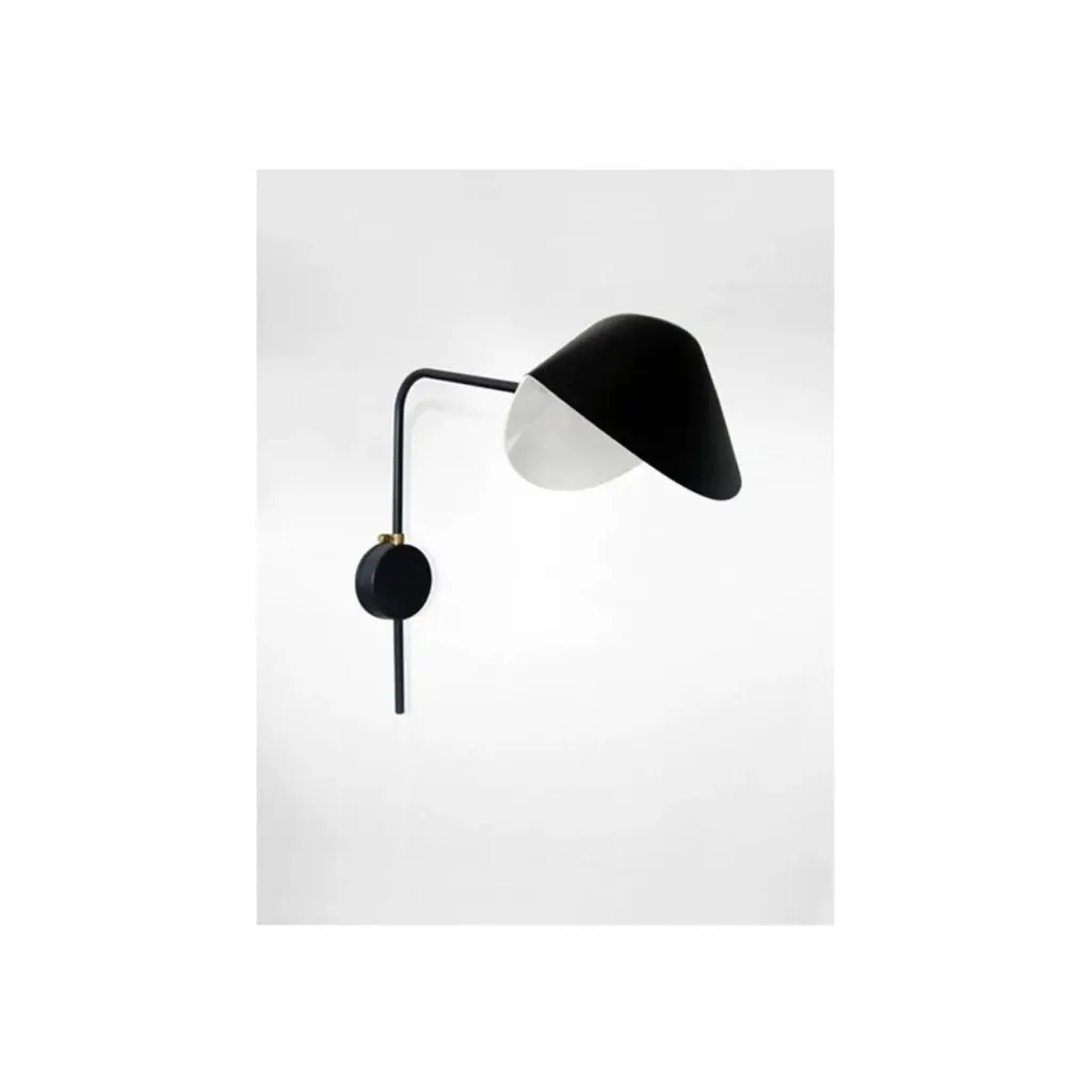 Small sconce Antony by Serge MouilleDimensions: D35 x H41 cmMaterials: Brass, steel, aluminiumOne of a Kind. Numbered.Also available in different colour.All our lamps can be wired according to each country. If sold to the USA it will be wired for the USA for instance.A reissue from 1962, the Antony Serge Mouille wall lamp consists of a curved steel rod and an adjustable aluminum reflector, mounted on a brass ball joint. Equipped with a round base or stirrup, this model is available with or without a switch, arranged either on the base or the reflector. We assure you a fast delivery for this numbered model accompanied by its certificate of authenticity. Also available in white.Serge MouilleBorn in Paris in 1922, Serge Mouille is today considered one of the greatest lighting designers in the world. He developed a talent for drawing and creation very early on and was the youngest student of his time to be admitted to the School of Applied Arts at the age of 13.Master goldsmith, Serge Mouille learned the art of modeling metal with a Hammer thanks to his mentor Gabriel Lacroix and worked for several goldsmith houses in Paris. It was his meeting with Jacques Adnet, director of the Compagnie des arts français, that would mark a turning point in his career.In 1951, Jacques Adnet commissioned Serge Mouille to create a “large light fixture” for his South American customers: the first three-arm floor lamp was born. This innovative Luminaire in molded black steel with organic shapes will influence his famous series of "Black Forms" and will forever mark the history of design. Serge Mouille then passes from the status of master craftsman to that of creative artist.At the beginning of the 1960s, Serge Mouille decided to radically distance himself from everything he had created until then by developing a series of light columns with fluorescent tubes. In 1963, he stopped producing lights to devote himself to teaching.Suffering from tuberculosis, Serge Mouille died in 1988 and his widow, Gin Mouille, decided to continue to bring his art to life by publishing under license his most emblematic creations. Each copy is made in France by editions Serge Mouille and has an engraved serial number, accompanied by a certificate of authenticity.