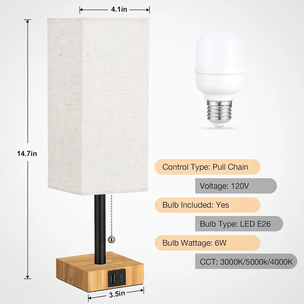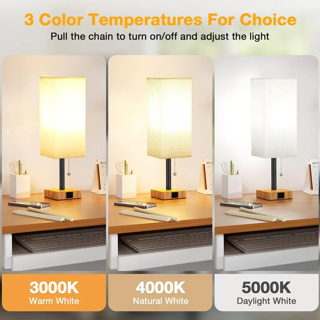 Transform your desk with the 3 Color Temperature Table Lamp. Instantly adjust from cozy warm to crisp cool hues, enhancing focus or relaxation at will. Save energy with eco-friendly LED technology that lasts. Sleek pull chain design fits any setting, while smart bulb compatibility adds convenience. Light up your world, your way – every time you switch on.Illuminate and recharge simultaneously with the dual-USB port lamp. Designed for multitasking, it powers two devices while casting a warm, adjustable glow over your workspace. And the cutting-edge USB-C port offers unmatched speed and universal compatibility. It's the smart choice for powering your devices efficiently.1 LED Bulb Included. LEDs excel over traditional ones in numerous aspects. With up to 60%-80% energy efficiency, they significantly reduce power consumption and boast a tenfold longer lifespan than conventional sources, greatly diminishing the need for frequent replacements. Free from mercury and other harmful substances, LEDs avoid potential hazards to both environment and human health, offering a more comfortable lighting experience without flicker or UV radiation.
