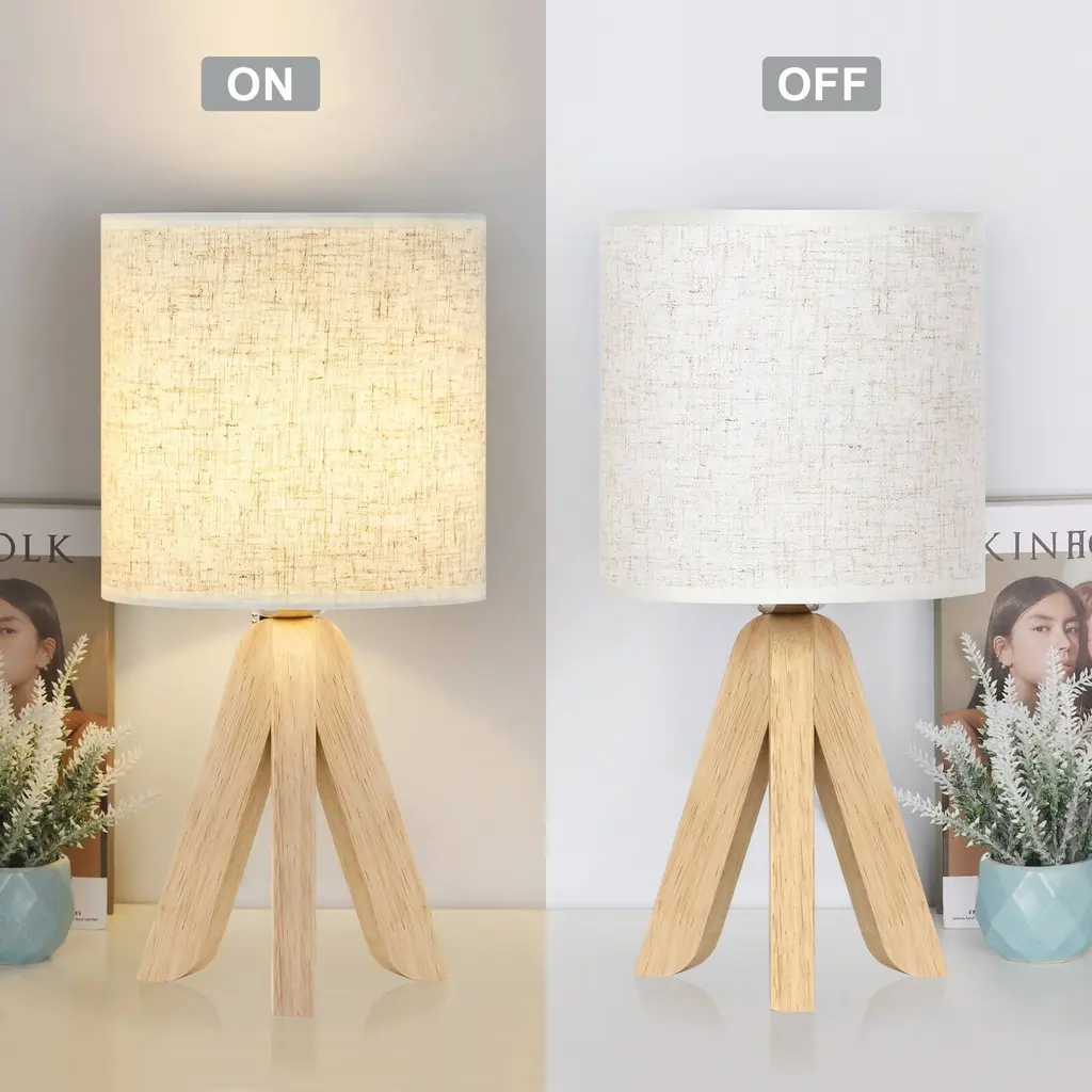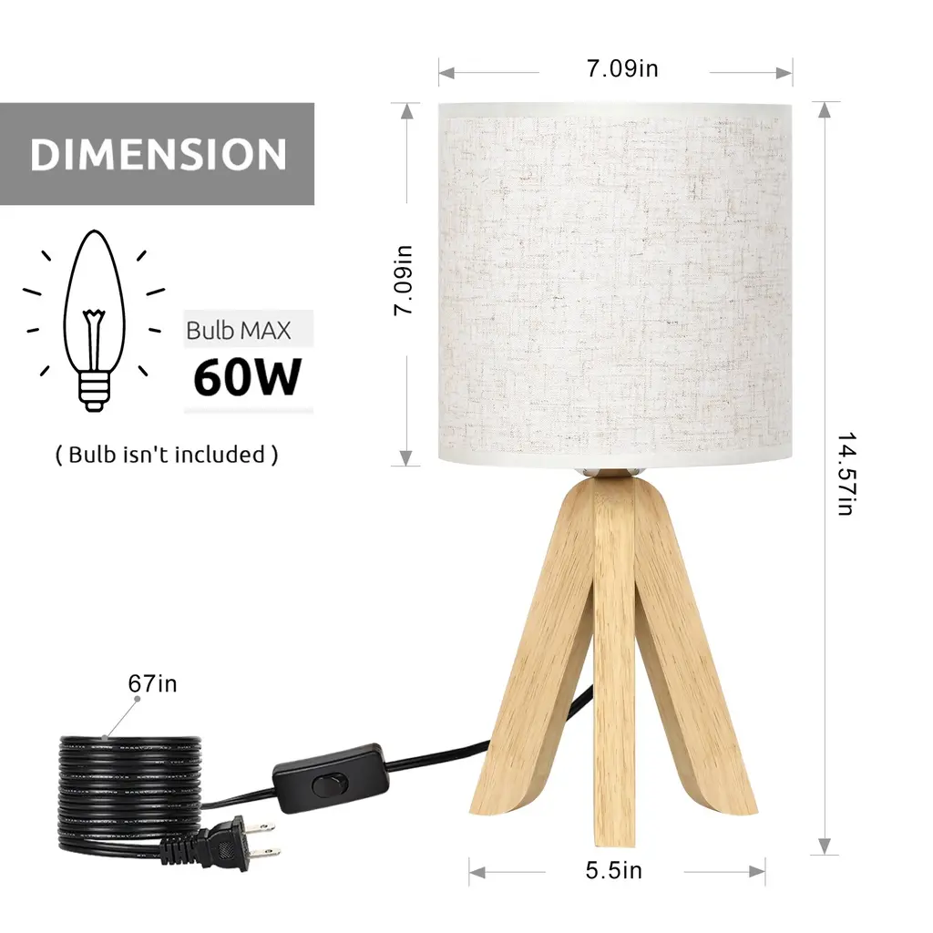 · Perfect decor: It features a linen fabric lampshade and solid wood tripod base, its minimalist design make it fits well in anywhere of your room or office. This table lamp is perfect decor for bedroom, living room and office.· Eye Protection:The fabric lampshade could soften the brightness and filter light into a diffused glow, so the light will be not harsh but friendly on your eyes. It creates a warm and cozy feeling in the house when spending time with your family.· Safety:The cord and plug of the bedside lamp are UL listed, which ensures you a safe product for daily use. With E26 universal standard base, it requires an E26 standard size light bulbs, Max 60 watts (Bulb not included).· Convenient: The minimalist modern design make it perfectly to be served as bedside table lamp, office desk lamp, kids room nightstand lamp, or decorative table lamp for guest room. If the light bulb stand above the shade, just try to turn the lamp shade over.· Warranty: We offer premium quality and the best service, but if for some reason you are not satisfied, please let us know, we will help you solve it within 24 hours and make you satisfied.