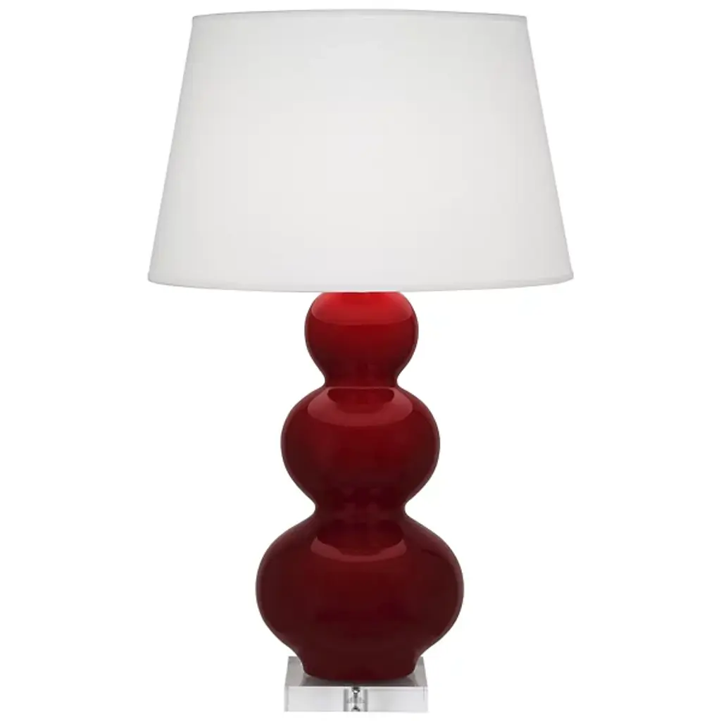 Pumpkin Small Triple Gourd Contemporary Accent LampFeaturesNumber of bulb: 1Bulb type: AMax wattage: 150WVoltage: 120VSocket: Medium E26Switch: 3-Way RotarySwitch location: SocketFinish: Pumpkin Glazed Ceramic with Antique Silvered AccentsShade: Pearl Dupioni Fabric ShadeCord color: SilverUL listed: DryDimensionsShade dimensions: 12.75 inches top x 16 inches bottom x 10 inches down sideBase dimensions: 1.25 inches height x 5.13 inches width x 5.13 inches depth