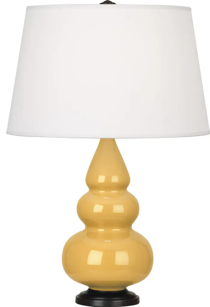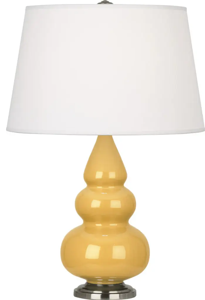 Pumpkin Small Triple Gourd Contemporary Accent LampFeaturesNumber of bulb: 1Bulb type: AMax wattage: 150WVoltage: 120VSocket: Medium E26Switch: 3-Way RotarySwitch location: SocketFinish: Pumpkin Glazed Ceramic with Deep Patina Bronzed AccentsShade: Pearl Dupioni Fabric ShadeCord color: SilverUL listed: DryDimensionsShade dimensions: 12.75 inches top x 16 inches bottom x 10 inches down sideBase dimensions: 1.25 inches height x 5.13 inches width x 5.13 inches depth