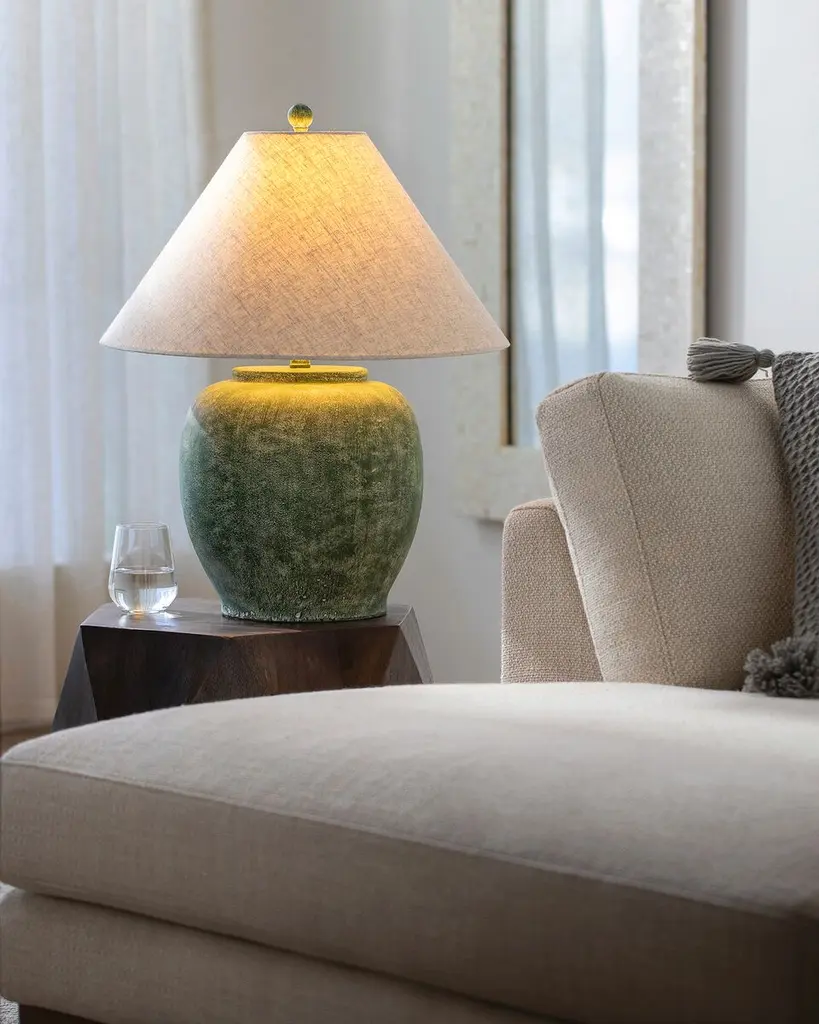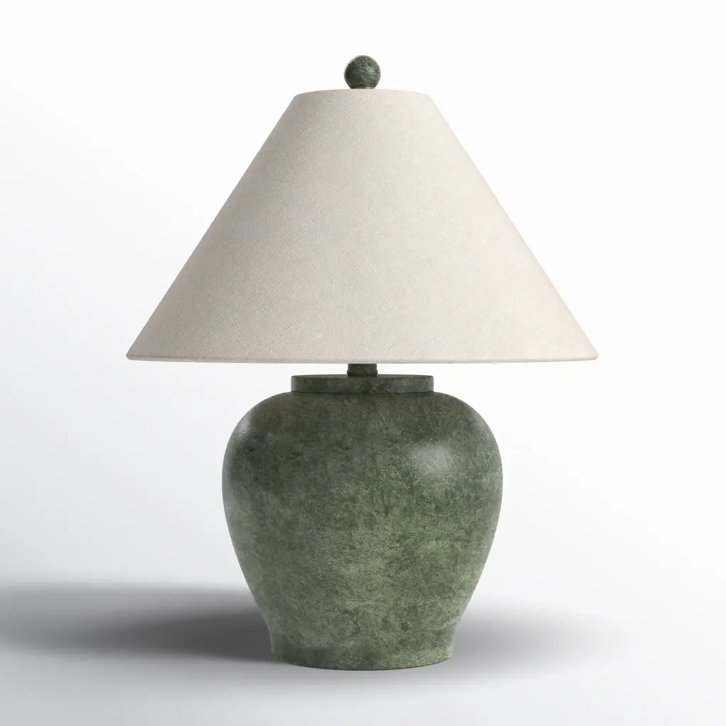 This Smith Accent Lamp will light up your home with its modern yet timeless design. Made of cement, this lamp is sure to make a statement in any room. The linen lamp shade adds a warm and inviting feel while the wipe clean finish ensures that you won't have to worry about spills or stains. The unique shape of this lamp will bring an effortless chic look to your home decor. Add the perfect touch of style and warmth with this Smith Accent Lamp!