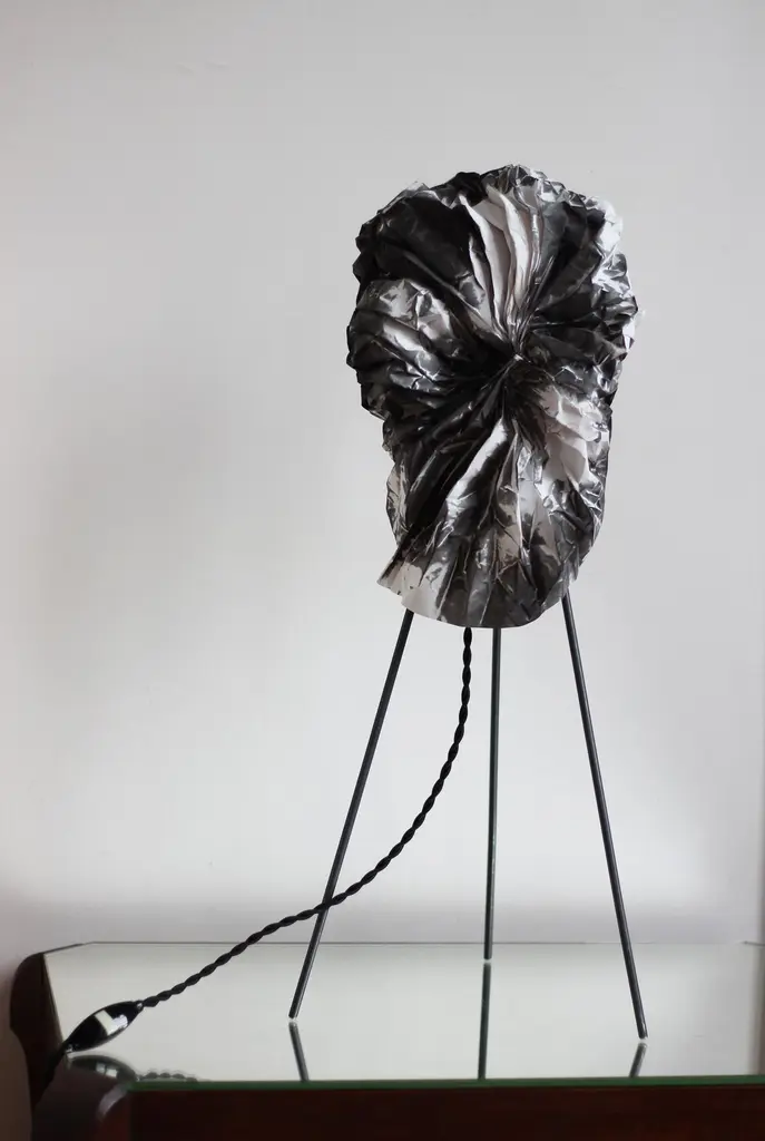Smoke sculptural floor lamp by Camille DeramTall Lamp : 35 × 35 × 72 cmMedium Size Lamp : 25 × 25 × 54 cmSmall Lamp : 20 × 20 × 32 cmMaterials: Metal and sculpted paper, Led E14 bulbCamille Deram is a designer of Parisian origin, a graduate of the Saint Etienne School of Art and Design. After her training, she went to work in Nagoya, Japan, with textile craftsmen. There, she learns the different techniques of Shibori (traditional Japanese dyeing). Back in France, she starts her own business as a product designer.She creates her objects inspired by the organic and rocky aesthetics of nature.Her creations are produced in a local and artisanal way, in collaboration with French craftsmen. In her work, Camille seeks to erase the boundaries between the different fields of art, and to create poetic, functional and aesthetic objects at the same time.
