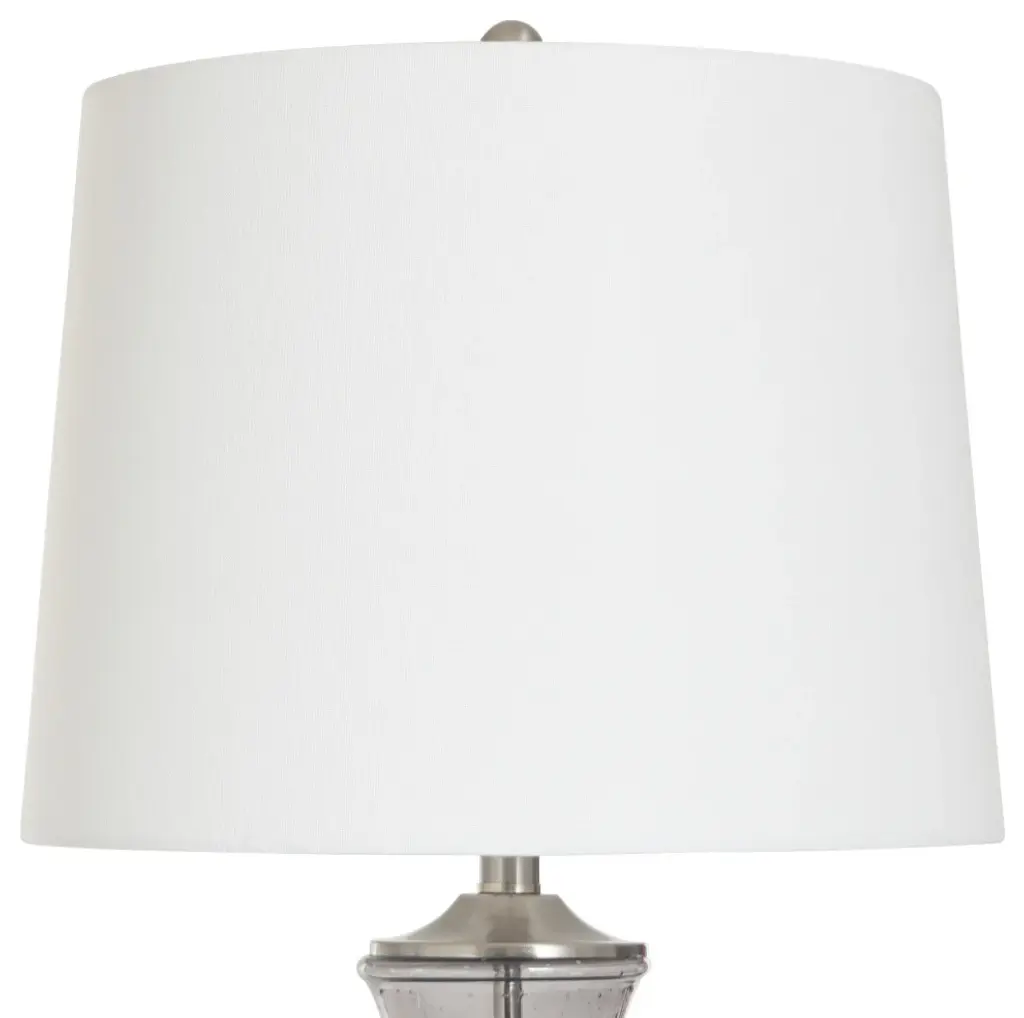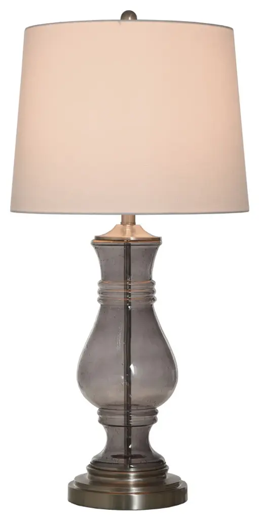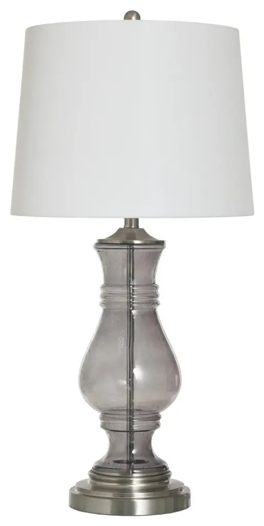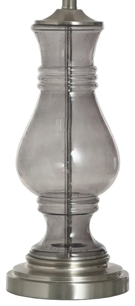 Decorate your contemporary home with this graceful smoky seeded glass table lamp. This piece is an alluring addition to your home office, living room, or bedroom and is sure to brighten your space.Features - Due to the production process, each piece is unique and no two are exactly alike.This table lamp is the perfect piece to place in an entry way or in your home office with its delicate seeded glass design.This lamp offers you the ability to adjust the brightness to your liking with a three way switch.Specifications - Location Rating - DryRequires 1 x 150W A21 E26 Incandescent, Fluorescent, or Equivalent bulb(s)(not included).Due to lighting and monitor differences, actual colors and finishes may vary slightly from what appears online.