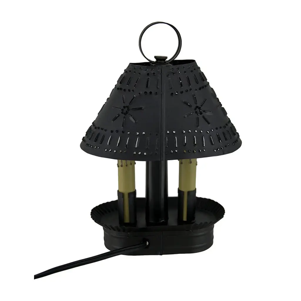Smokey Black Finish 2 Light Punched Tin Accent Lamp - 11.5 X 8 X 6 Inches - 11.5 X 8 X 6 Inches - Black