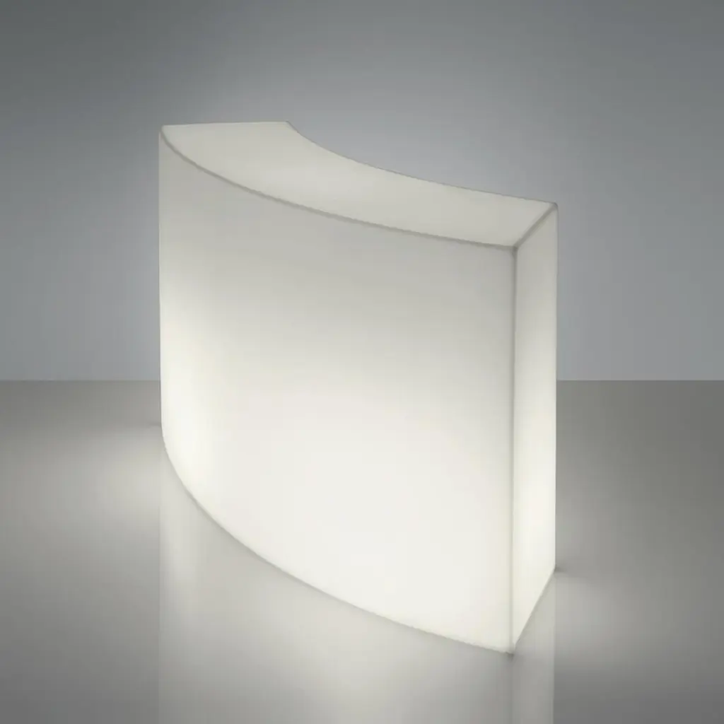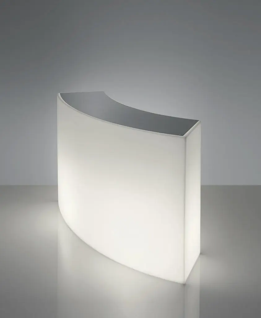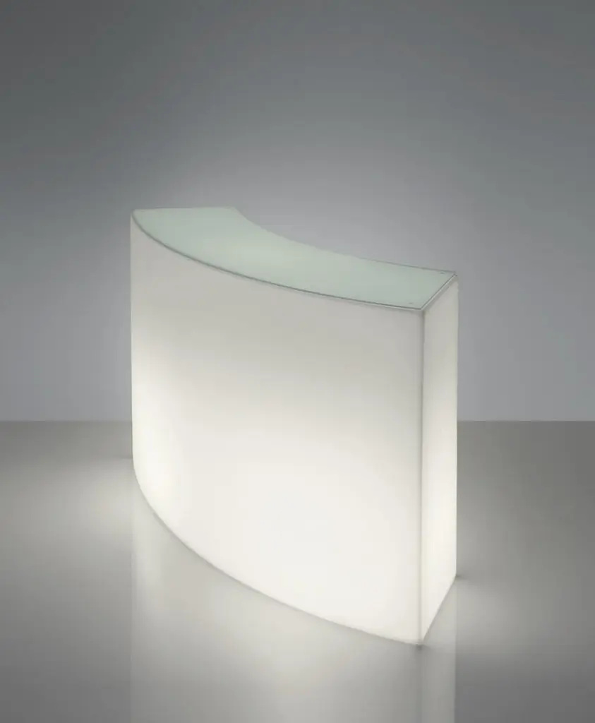 Snack Bar Counter by Giò Colonna RomanoDimensions: D 60 x W 165 x H 100 cm.Materials: Polyethylene and tempered glass.This product is suitable for indoor and outdoor use. Please contact us.Our stories happen in places precious to us. SLIDE was born from the desire to produce furniture and light to create the perfect atmosphere that highlights emotions.Design is inspiration, surprise, joy. It's the amazement of seeing something unique for the first time. It's creating spaces to feel good and live surrounded by beauty. It means giving a personal imprint to indoor and outdoor spaces. It means choosing your ideal element that is the perfect setting for emotions and experiences, which become indelible memories. The founder Giò Colonna Romano knows this well, combining his fervent imagination with thirty years of know-how in the processing of plastic resins, giving birth to SLIDE in 2002. The first note of amazement is the luminous furniture, which immediately became a must have in the world of events. Since 2015, his son Marco Colonna Romano has taken over the reins of the company, with the same desire to grow and innovate as his father. Thanks to a new panache and the team of young people it surrounds itself with, SLIDE becomes a beloved company for outdoor furniture: new shapes, materials and tactile textures have won the hearts and ideas of architects and interior designers around the world. SLIDE has thus created complete collections and furnishings, with new shapes, whose lines arise from collaboration with internationally renowned designers of the caliber of Alessandro Mendini, Paola Navone, Stefano Giovannoni, Fabio Novembre, Marcel Wanders, Karim Rashid, Marc Sadler, Francesco Favaretto and Marcantonio.New materials were chosen and inserted, initially soft and rigid polyurethane, and then comfortable cushions, waterproof fabrics, tactile textures ideal for completing the polyethylene furnishings with taste and class. But SLIDE does not forget its first essence, lighting: in recent years it has developed a line of much more technical lamps for large areas, essential in shape but with great visual impact. For the first time, Slide has managed to give an artisanal twist to an industrial process: to meet the increasingly high demands of living, the production creates non-replicable shades, in which every small imperfection enhances the industrial process and makes each piece unique . Because Slide's strength has always been the careful reading of the market, the creation of something that didn't exist and which then became necessary: here Slide continues its production in Buccinasco, on the outskirts of Milan, but its name and its products reach more than 130 countries around the world.