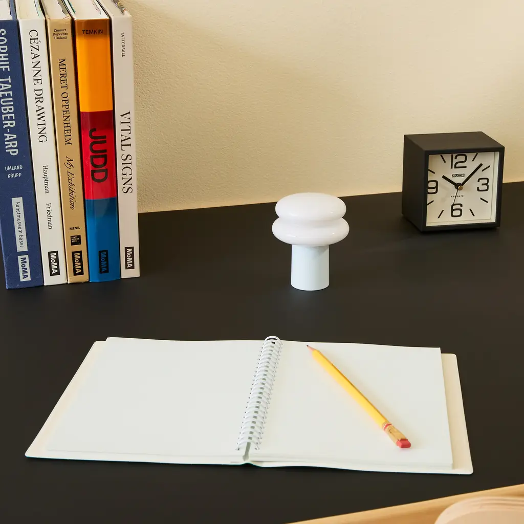 The best-selling lamp in a mini portable version. MoMA Exclusive: Now you can take the popular Snowman Lamp anywhere with this mini portable version! Composed of two stacked pill shapes, the Portable Snowman offers a chic reinterpretation of a snowman’s body, just like the original. Uniquely shaped shade. Small wireless, lightweight portable design. Touch button on side lets you choose 3 levels of brightness (100%, 60%, 10%). Choose from warm or cool light. Candle Mode creates the flickering light of a candle using self-developed software. Magnetic bottom so you can attach it to any metal surface. Includes carabiner clip that attaches to magnetic bottom so you can attach the lamp to your bag. Integrated LED bulb, 40 lumens. 2700–5000K. Charges fully in 1.5 hours via USB-C cord (included) for up to 8 hours of light. Made of ABS plastic and steel. Simple assembly required. Do not store outside. Measures 3.75h x 3.5”diam.