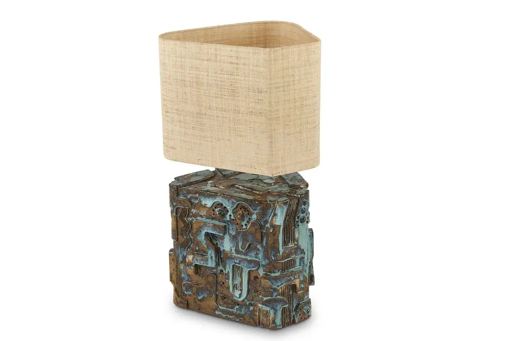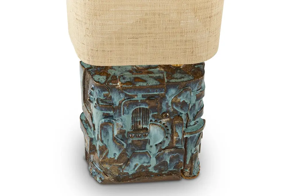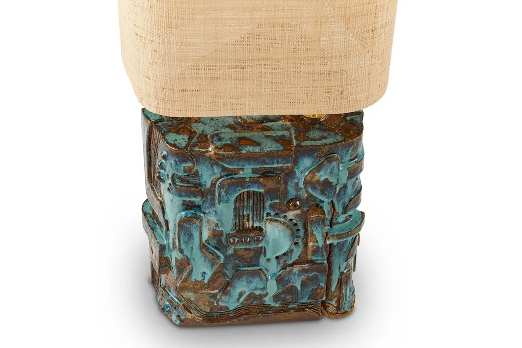 So Disco Table Lamp by Egg DesignsDimensions: 42 L X 38 D X 83 H cmMaterials: Handmade Ceramic, Brass, Raffia ShadeFounded by South Africans and life partners, Greg and Roche Dry - Egg is a unique perspective in contemporary furniture inspired with a soul that’s deeply rooted in the African continent.We believe Egg has a distinctive African design dialect.We dream that our products will not only be judged by their function and form, but by the beauty of their eternal narrative.In everything we create we must answer the question, “Is it Egg enough?”Egg, is a spirited blend of heritage, passion, meaning and African soul. It stands the test of time. It’s curiosities that make you smile. It’s love and truth that can be seen from afar and equally found in the minutest details. That’s why every piece we craft comes from Africa and carries within it a part of the African soul. We’re a melting pot of tribal craft, African heritage and modern luxurious expression.“If it’s not Egg enough, it’s not worth doing!”We have widened the prism of contemporary African design in Modern Antiques, high-end Furniture, lighting and custom interiors inspired by an African provenance for a modern, international customer.All our lamps can be wired according to each country. If sold to the USA it will be wired for the USA for instance.