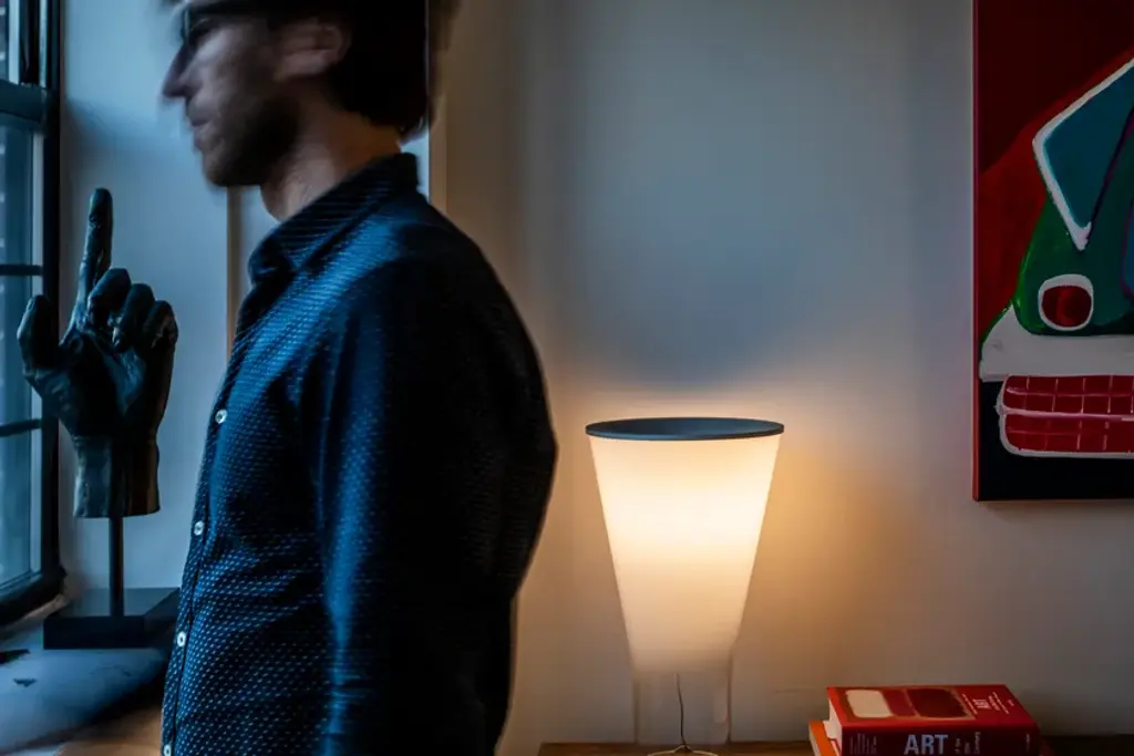 Soffio is a table lamp made of blown glass and aluminium.LIGHT SOURCE100/240VLED included 13,8W2700 K 1300 lm CRI>80integrated touch dimmerIP 20Energy efficiency F A lamp with an understated look, Soffio spreads warm, intense light, setting a refined tone for any space. The shading of the diffuser is a feat of craftsmanship; each piece is one of a kind. The white glass produces soft area lighting, while the transparent glass functions as a pedestal for the upper part.