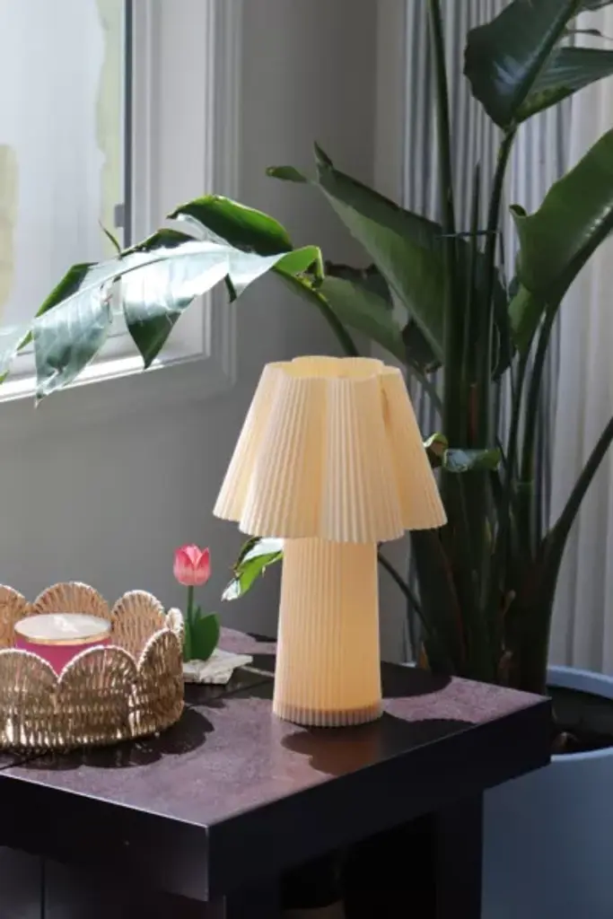 Designed and produced in San Diego, CA, we 3D print the base and lampshade out of bio-sourced PLA plastic, comprised of renewable resources such as corn and sugar cane, making our lamp a sustainable addition to your home. **Content & Care** \- Designed to to be functional art pieces, made to fit perfectly together without the support of screws or hardware. \- Each order comes with both the lamp base and shade, along with the LED light bulb and black cord. \- Using an LED Light Bulb is mandatory **Size** \- Total dimensions: 10" x 10" x 14"