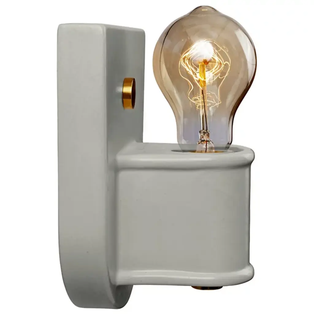 The solid inversion table lamp possesses a rustic aesthetic with its solid clay-like exterior and classy gilded power knob. Its cube shape is appropriate for this lamps portable design.