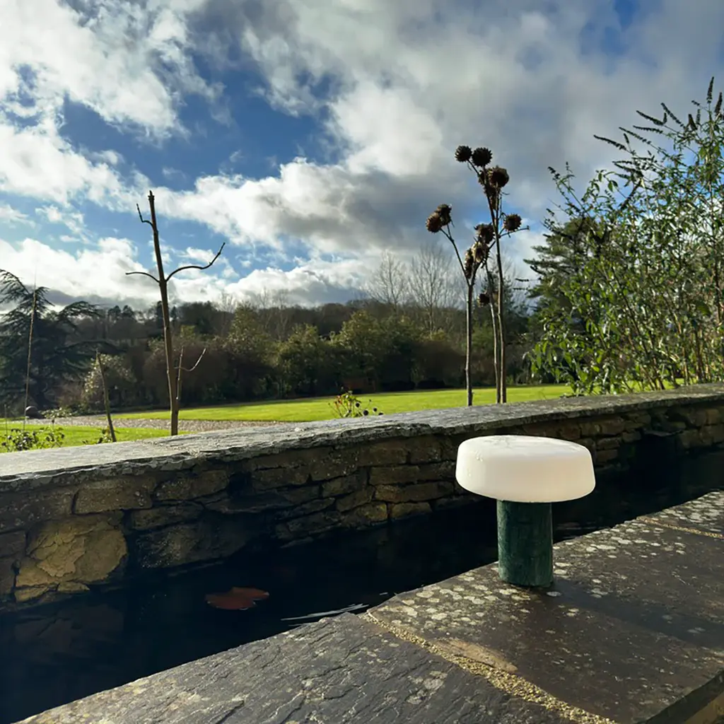 The Table Light showcases a cylindrical base meticulously crafted from fine-polished Serpentine, Nero Marquina, or Carrara marble, each piece unique due to natural variations in hue and veining. Topped with a hand-blown opal glass shade, it emits a soft, diffused glow. Equipped with a rechargeable battery, this lamp offers flexible placement without the need for a power outlet. A three-stage touch dimmer allows for easy adjustment of light intensity.