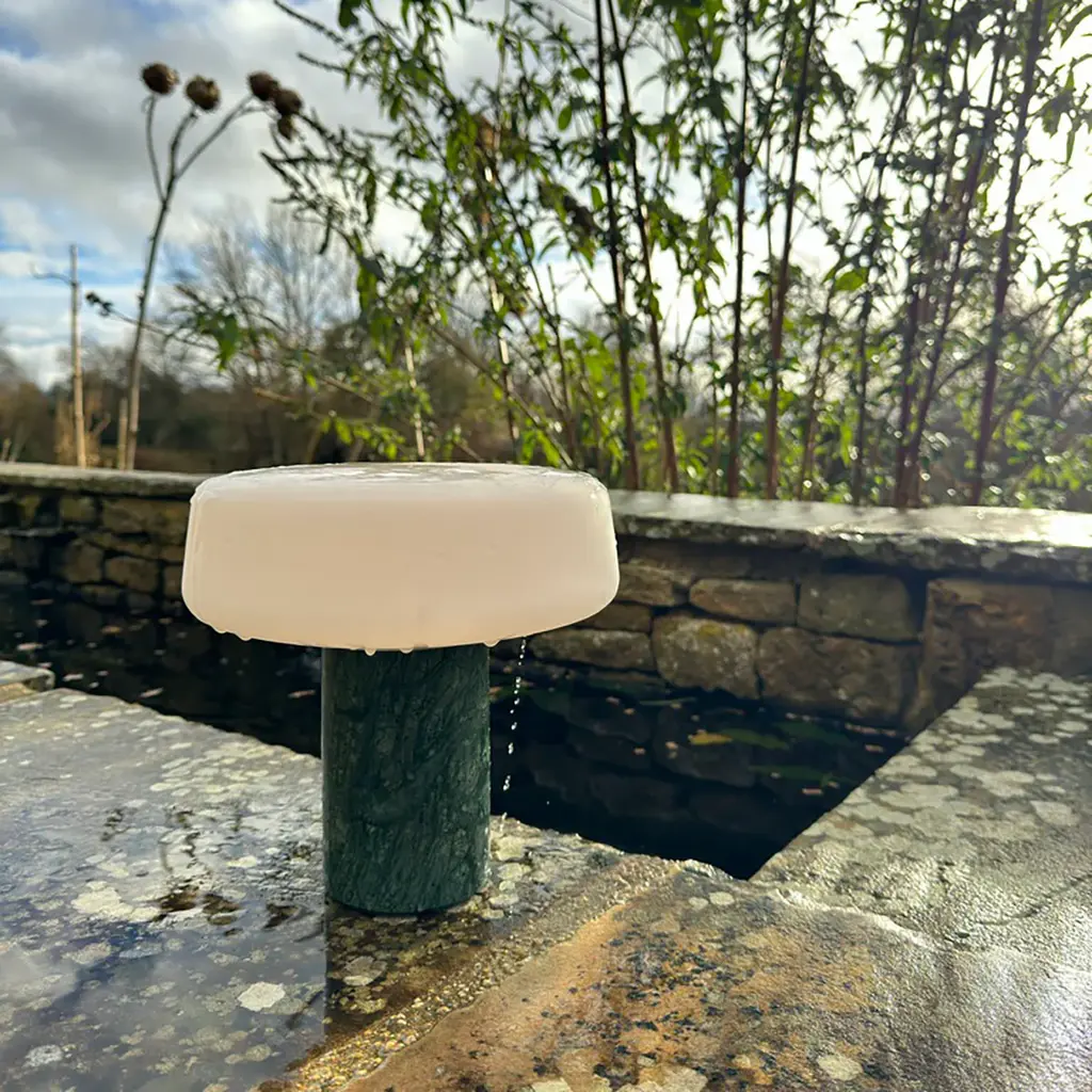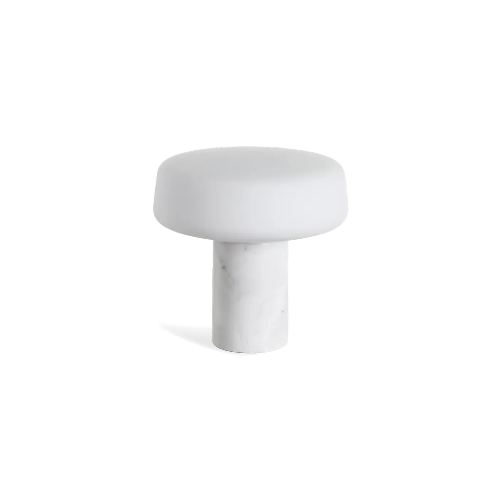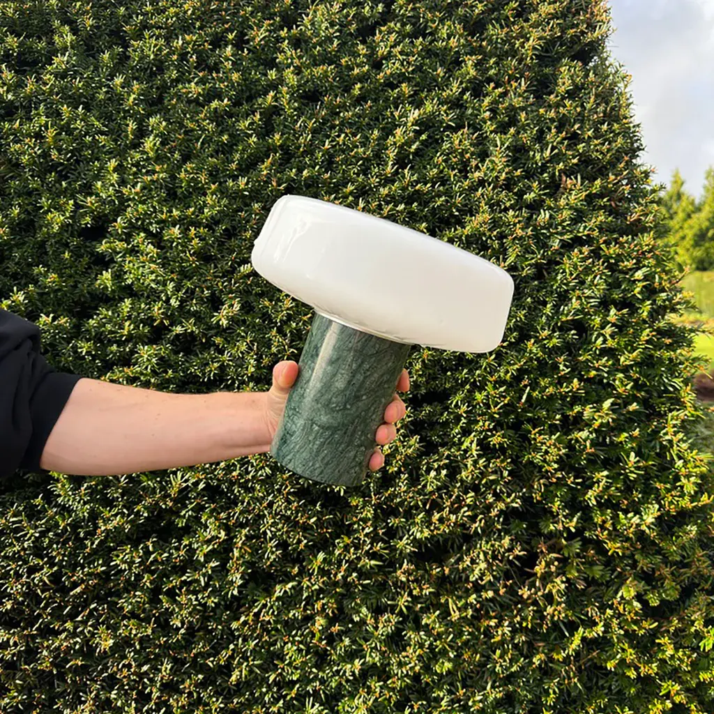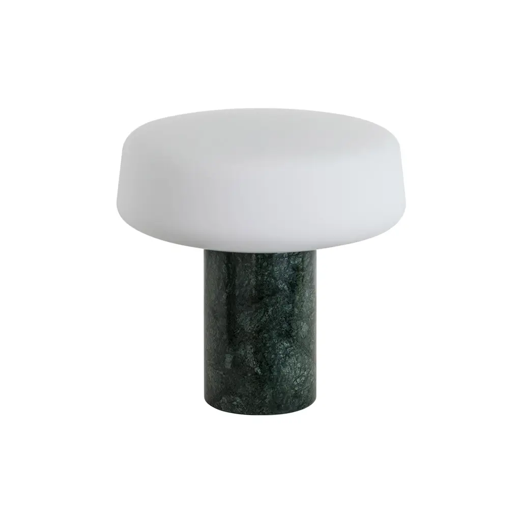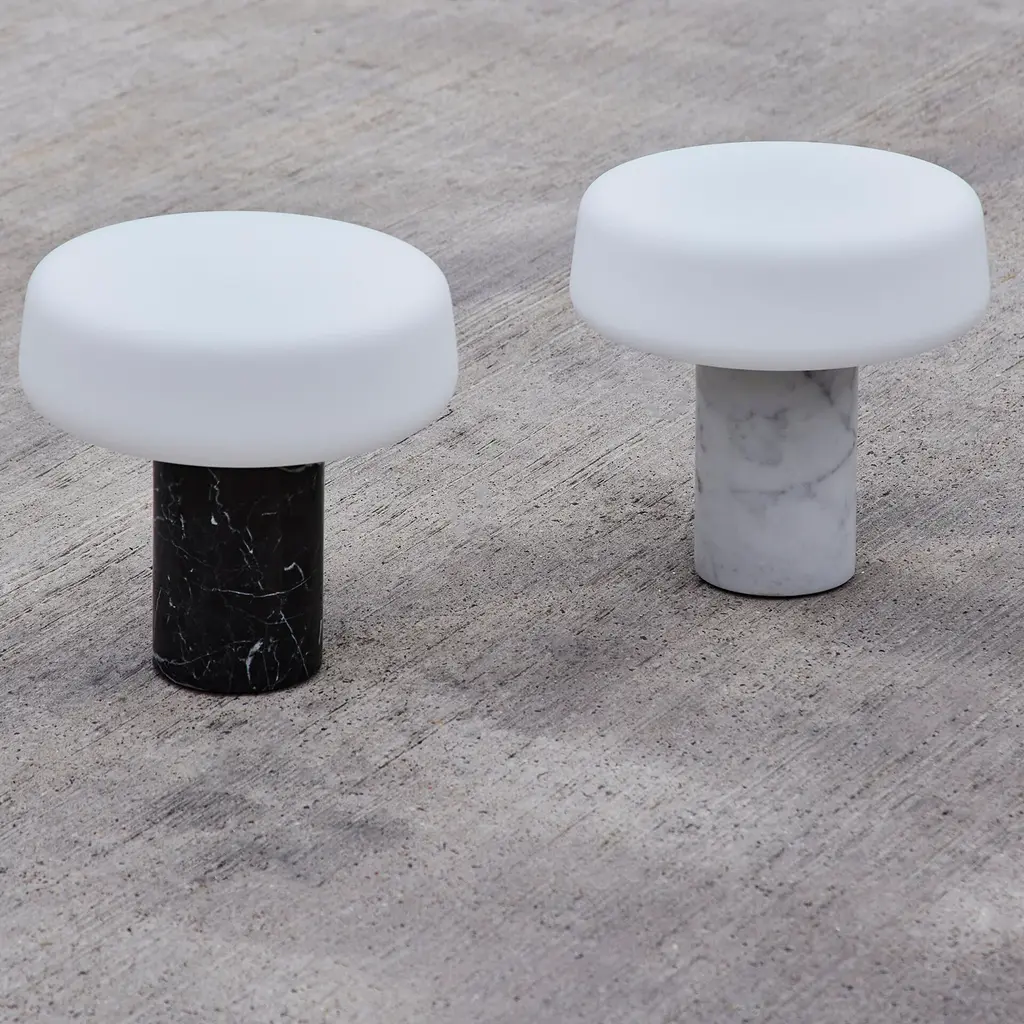 The Table Light showcases a cylindrical base meticulously crafted from fine-polished Serpentine, Nero Marquina, or Carrara marble, each piece unique due to natural variations in hue and veining. Topped with a hand-blown opal glass shade, it emits a soft, diffused glow. Equipped with a rechargeable battery, this lamp offers flexible placement without the need for a power outlet. A three-stage touch dimmer allows for easy adjustment of light intensity.