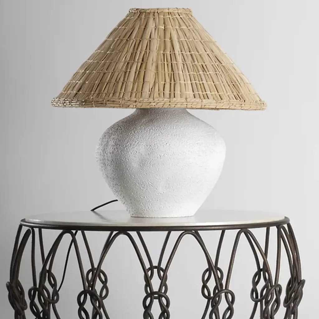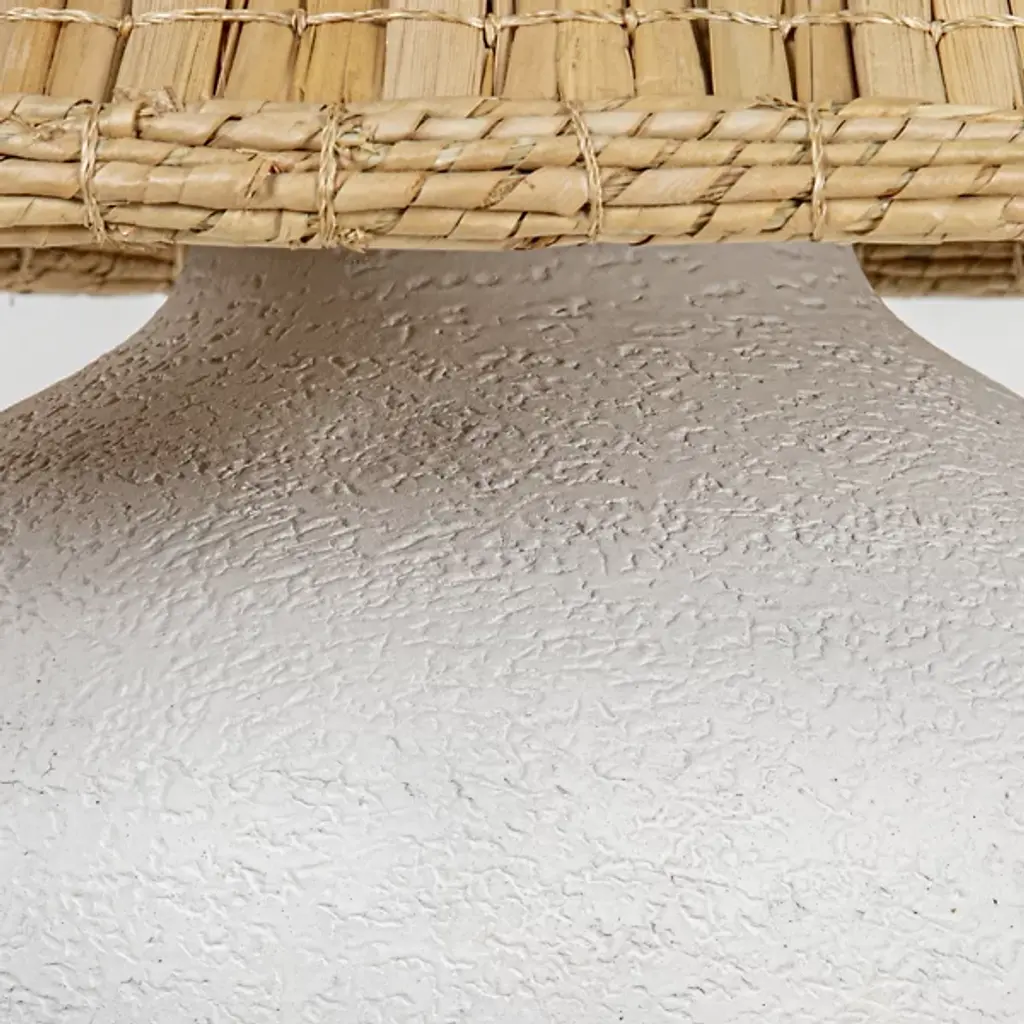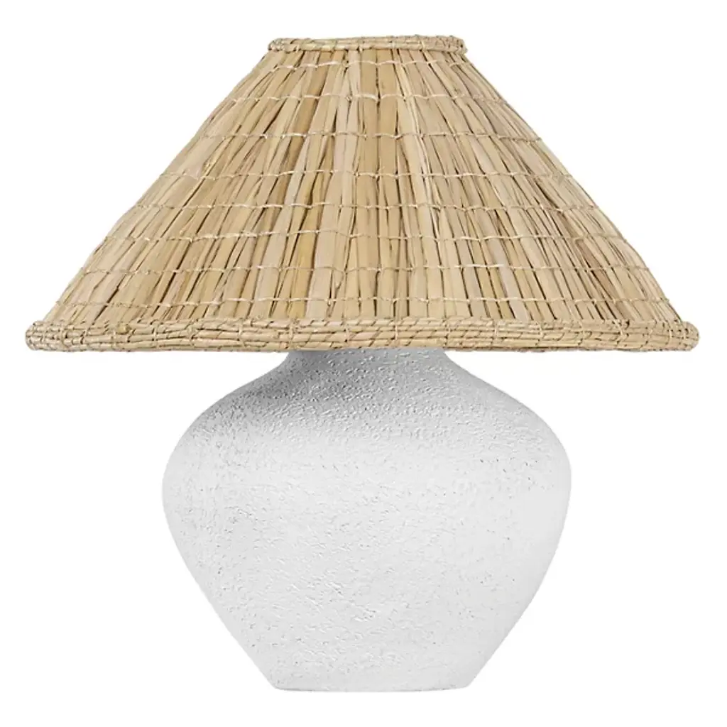 The Solon Table Lamp from Troy Lighting showcases delicate craftsmanship and organic aesthetics. The ceramic base of the lamp boasts distinctive indentations, giving it a found object quality that adds character to your space. The woven seagrass shade of Solon introduces a refreshing touch with its sharp taper and intricate texture. As brilliant light emanates downwards, it illuminates the tactile clay, creating a warm and inviting ambiance. Solon brings a Bohemian sense of style to your décor.