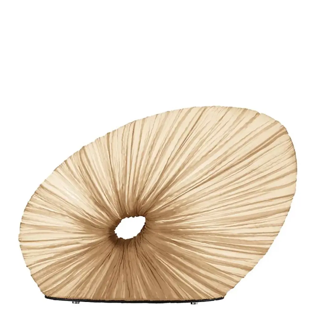 The Soprano Table Lamp from Aqua Creations is a standout creation of silk and steel that matches modern refinement with architectural elegance. Part of the Orchestra collection, inspired by musical melodies and sculpture design, each fixture is handmade by Israeli artisans, using slim steel framing surfaced in luxurious silk shades, treated for durability. The intricate folds of the silk shade offer a sophisticated form that stands out from its surroundings, the pleated shade forming a loop around the opening that creates a mix of glowing ambiance and shadow.