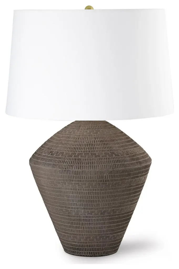 Regina Andrew Soren Ceramic Table Lamp (Brown); Dimensions 18W x 27H x 18D; Uses one maximum 150 Watt E26 Base Bulb (Not Included)