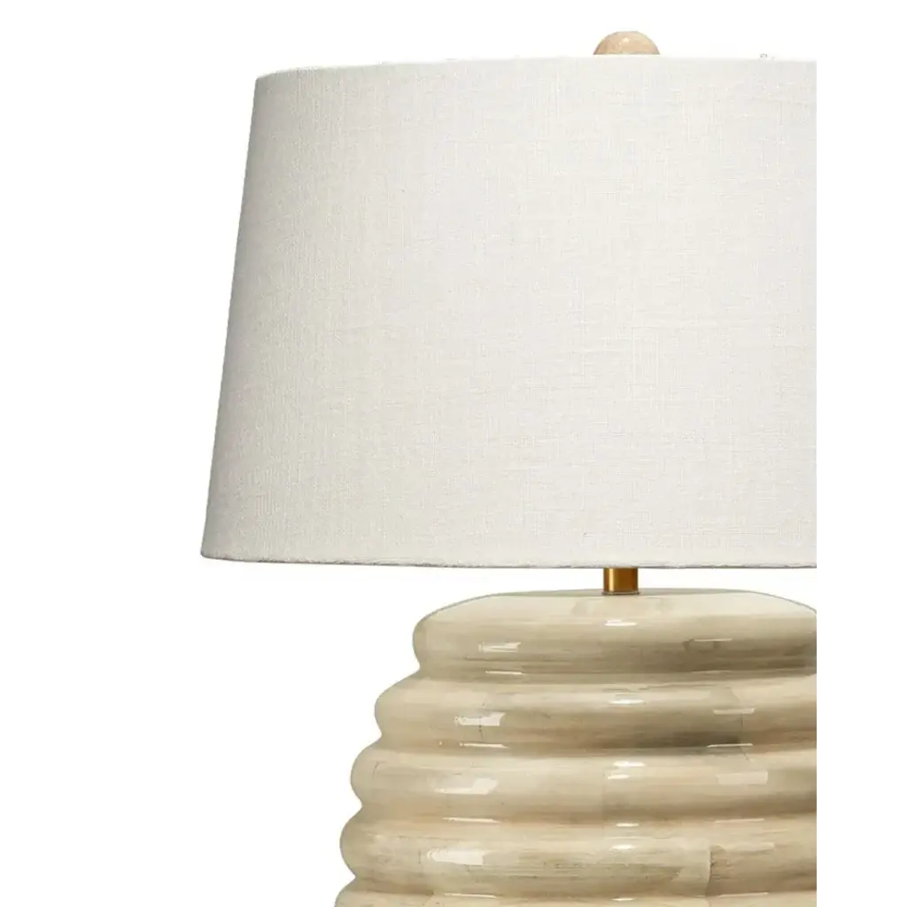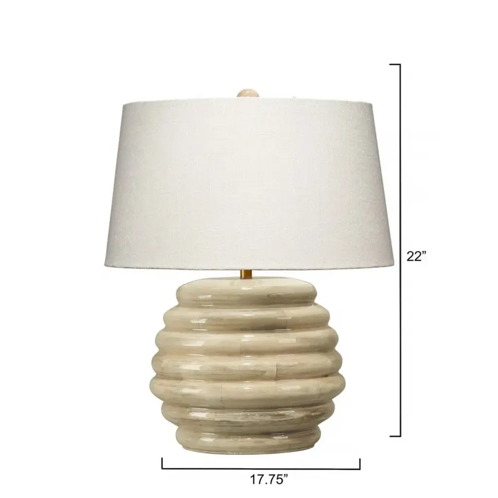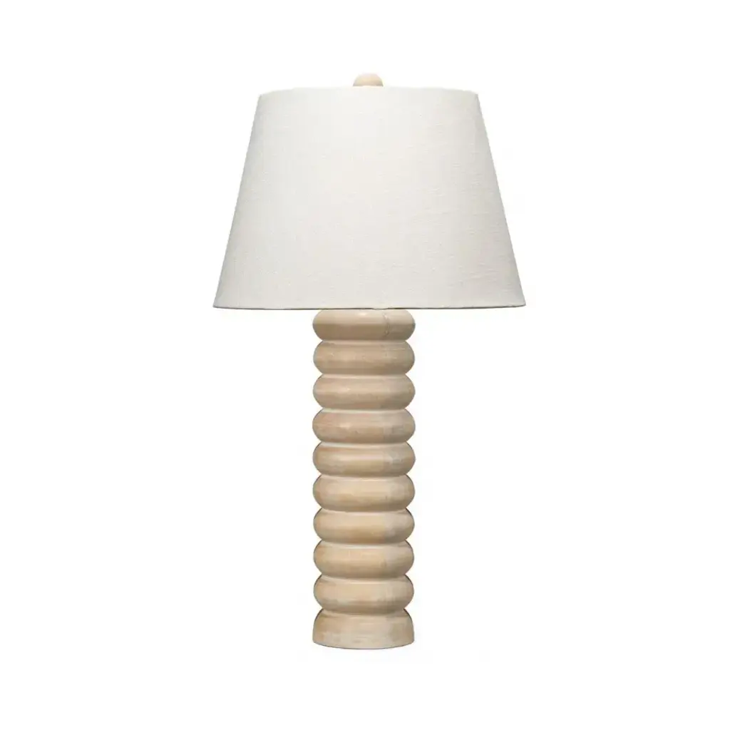 Inspired by both the golden ratio and 14th century counting devices, this hand-carved mango wood table lamp exudes a simple warmth. The sustainable hardwood base is given a natural finish and is topped with a tapered shade in linen and a coordinating wood finial. It is ideal for a casual chic décor, and is especially striking when displayed in pairs.