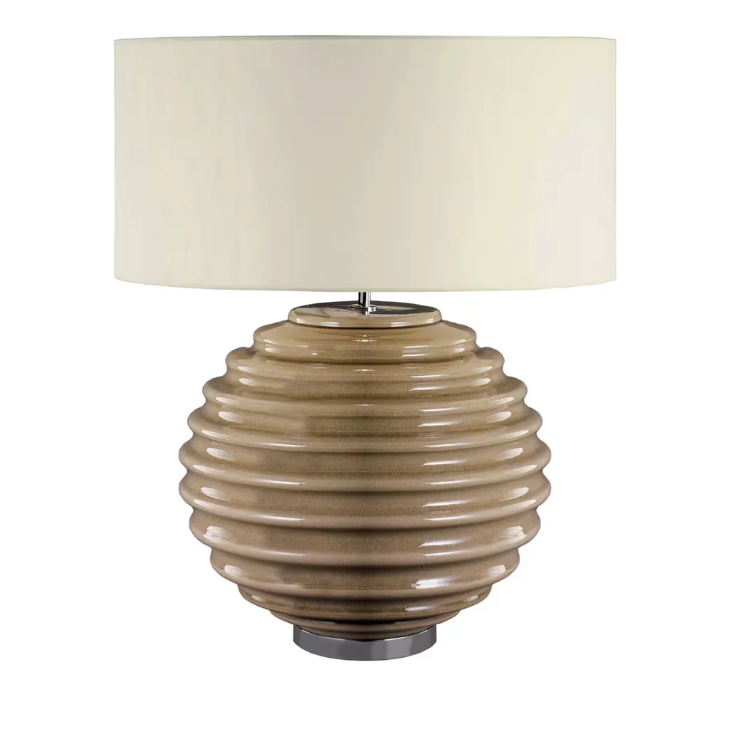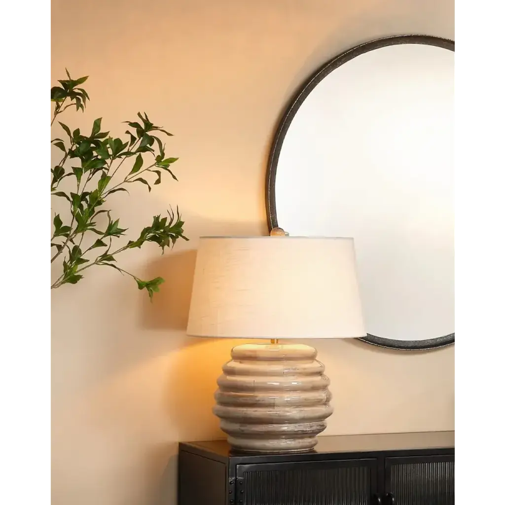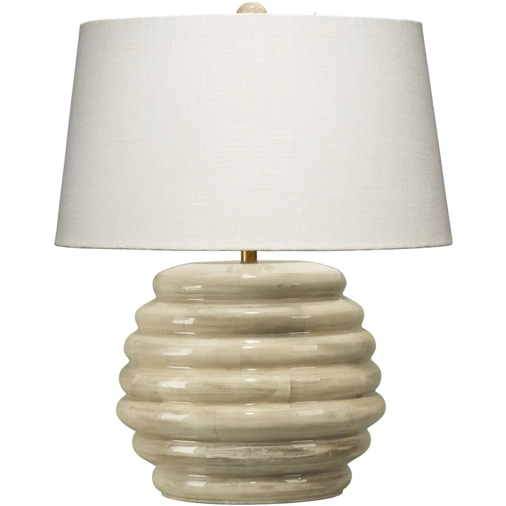 Inspired by both the golden ratio and 14th century counting devices, this hand-carved mango wood table lamp exudes a simple warmth. The sustainable hardwood base is given a natural finish and is topped with a tapered shade in linen and a coordinating wood finial. It is ideal for a casual chic décor, and is especially striking when displayed in pairs.