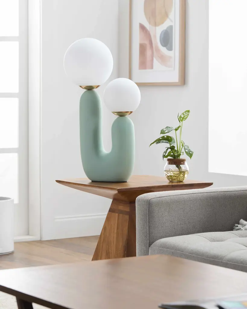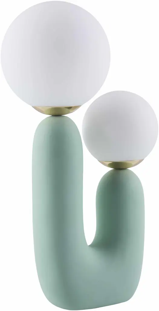 Collection: Sovramonte Colors: Green, White, Translucent Material: Body: Resin,Shade (Outside): Glass,Shade (Inside): Glass Styles: Contemporary Made In: China Lighting Type: Accent Table Lighting Shade Material: Glass, Glass, Glass Shade Color: White, White Cord Length: 6' Switch Type: On/Off Number of Bulbs: 2 Socket Type: E-26