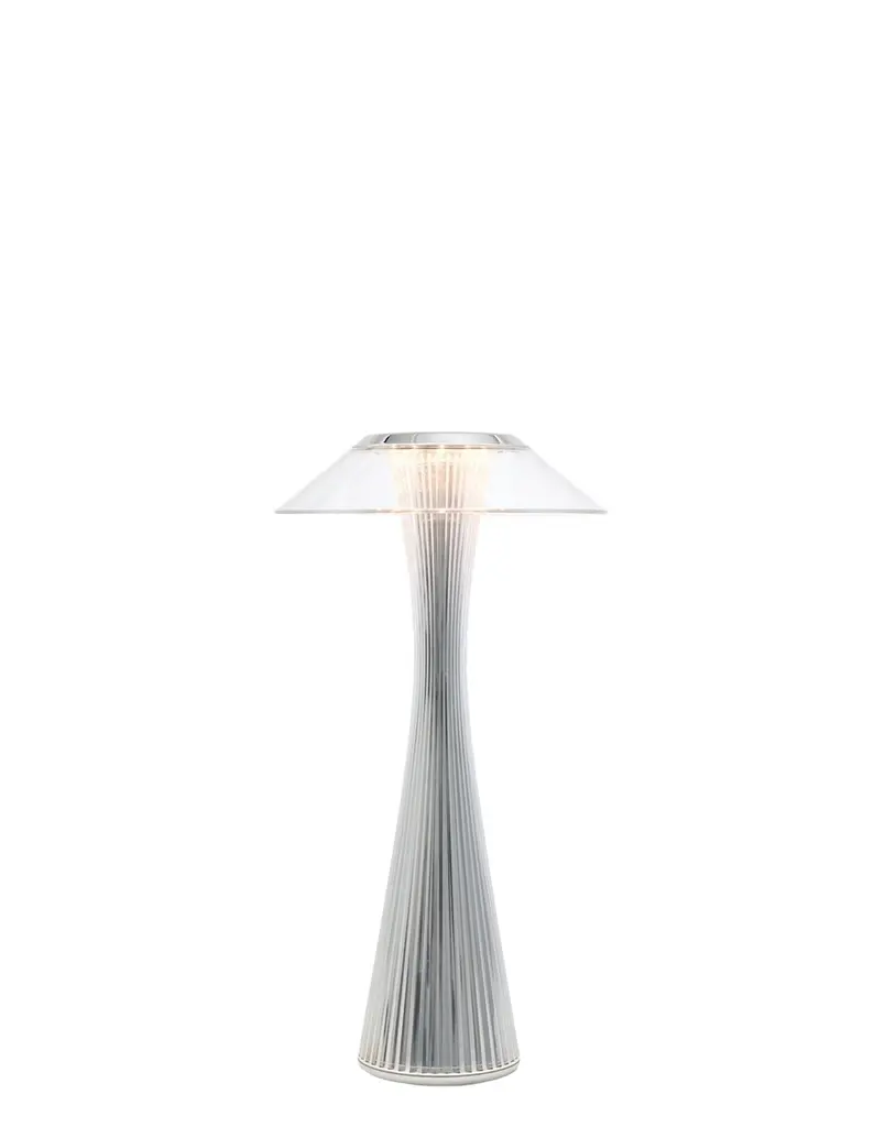A table lamp with an elongated shape: the silhouette recalls the shapes of the Space Needle, the tower that made the Seattle skyline famous.