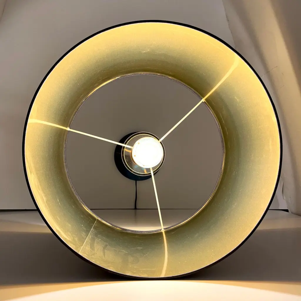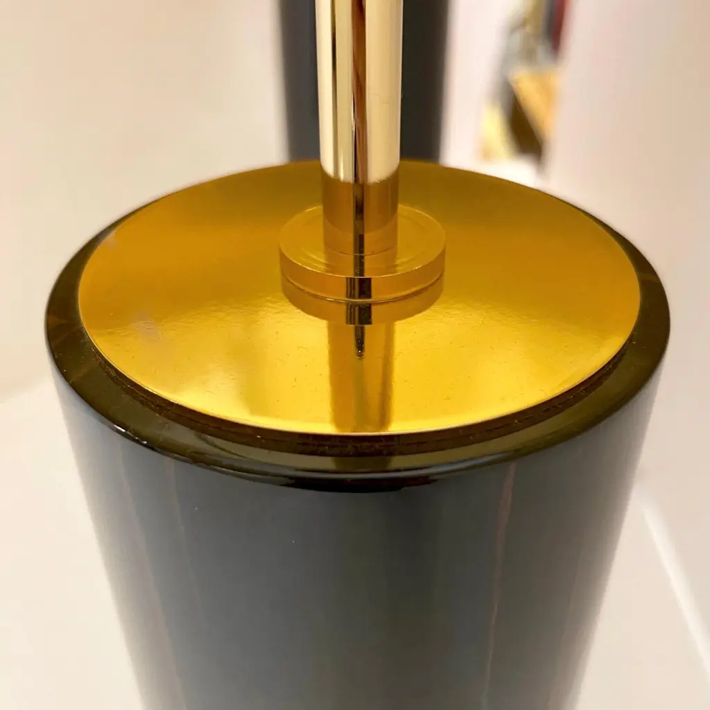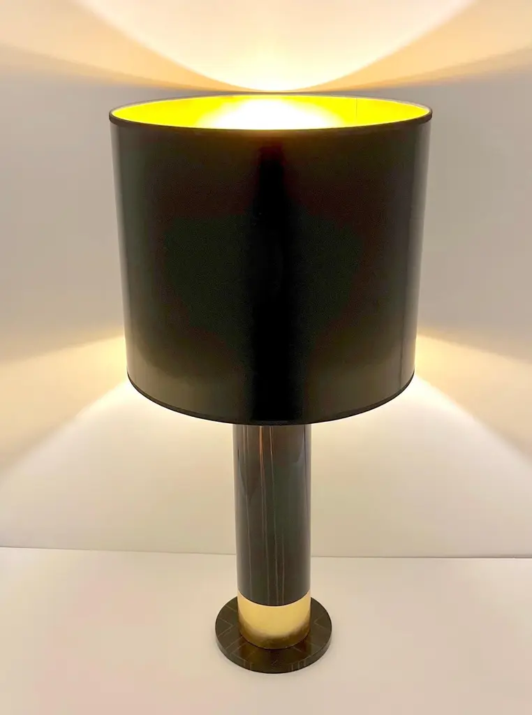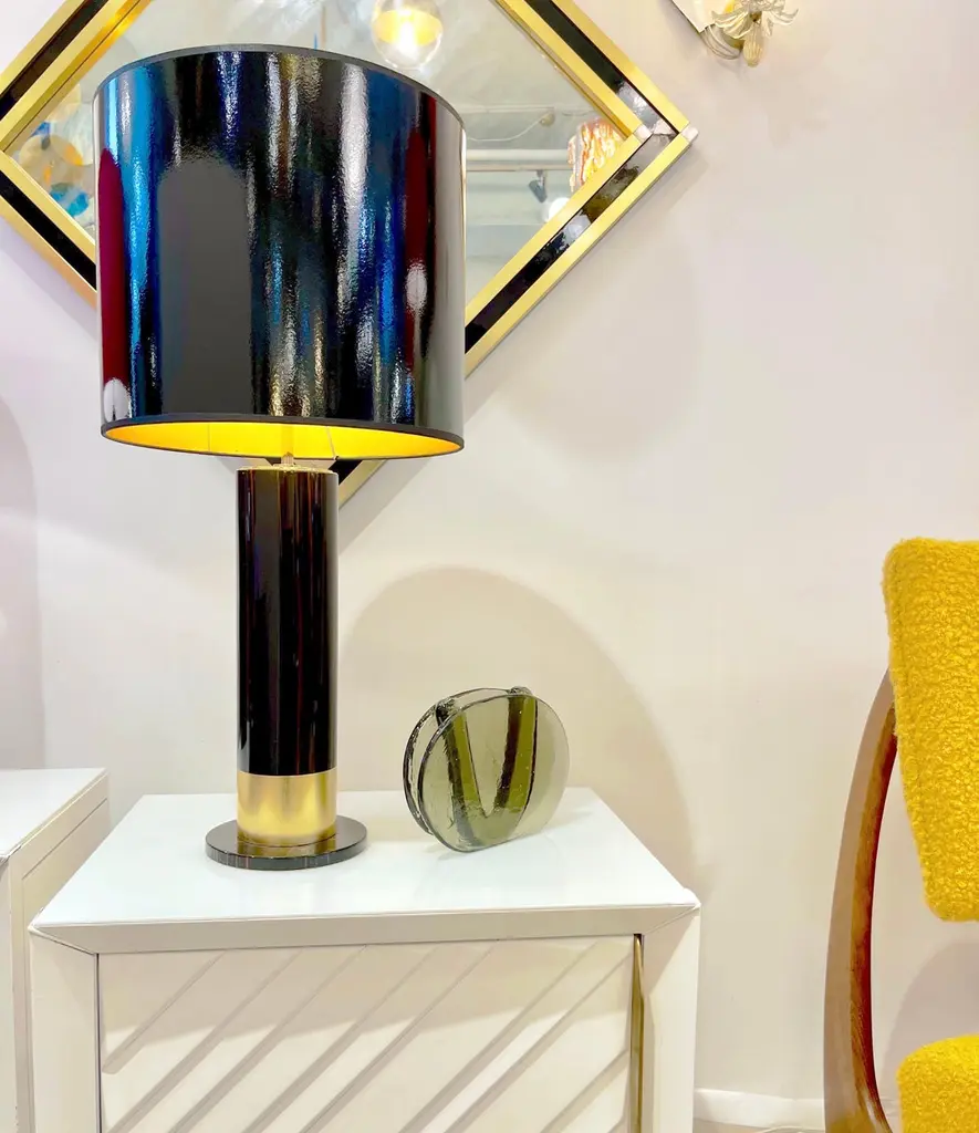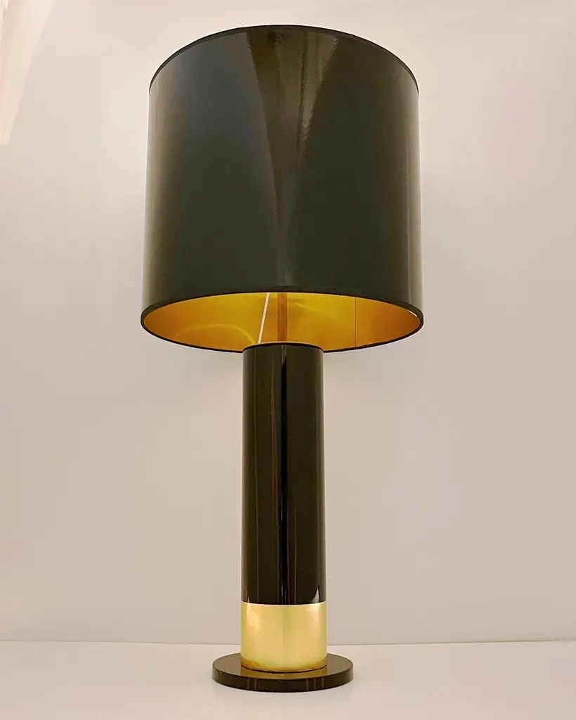 Spanish Art Deco Design Pair Of Black Brown Veneer & Gold Leaf Cylindrical Lamps