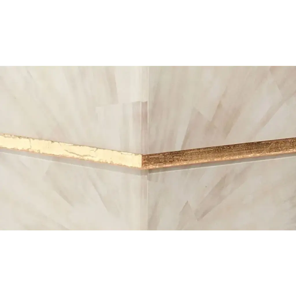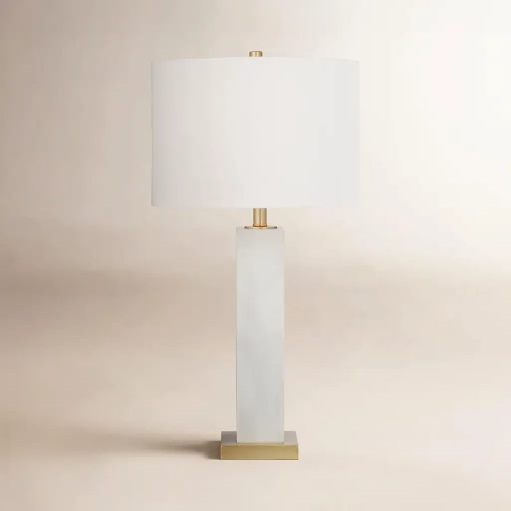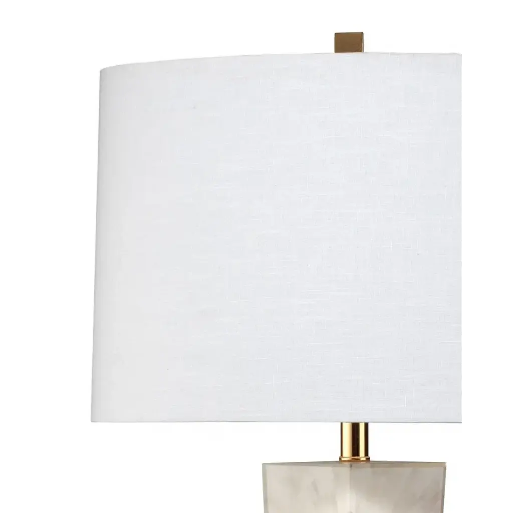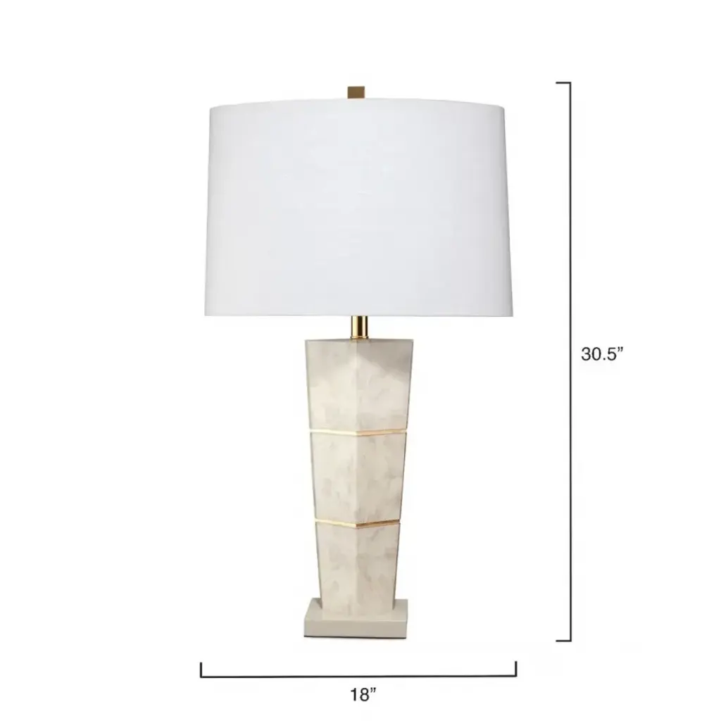 Add the spectacular beauty of natural burnished horn with none of the cruelty to your home. The horn inspired patterns are created by artisans from layers of soft gray lacquer and accented with genuine gold leaf rings. Balanced with a linen shade and cubed cylinder finial in matching gold leaf.