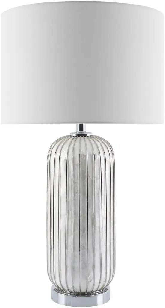 The Speranza Table Lamp is an innovative blend of natural materials and contemporary style. Constructed almost entirely mother of pearl, cut into circlets and arranged in a neatly organized array that spans the body of the piece. The metallic hardware and finial of polished stainless steel beautifully complement the sparkling body, completing the look of this three-way turnkey lamp.