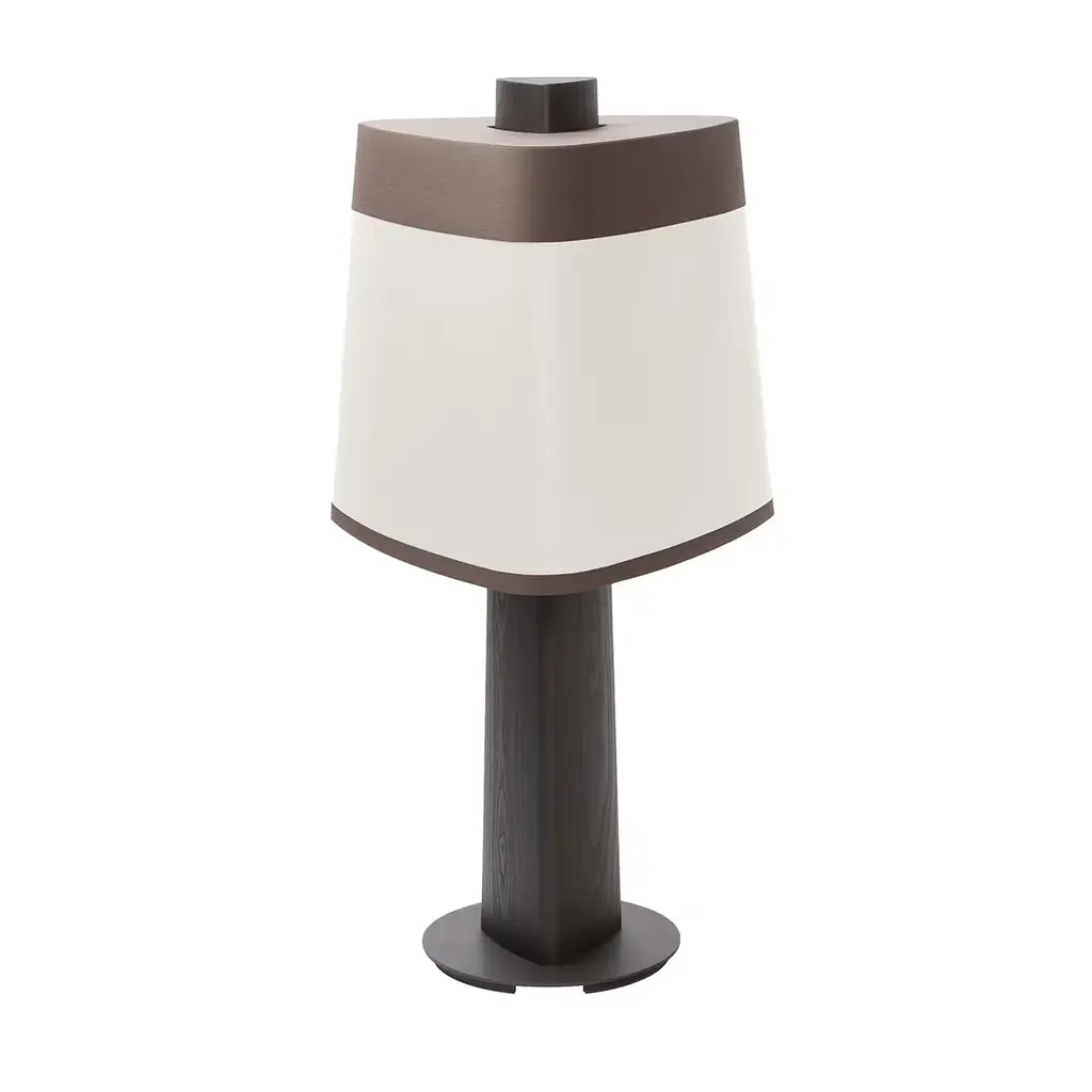 Seascape Lamps presents the balanced design of the Spin Table Lamp. It features smooth, sculptural shapes that fit as well in narrow spaces as in more open concepts. A warm, ambient column of light sits on a wooden veneer base, connected by a minimal metallic stem. The Spin displays strongly in silhouette as a solo piece or in multiples.