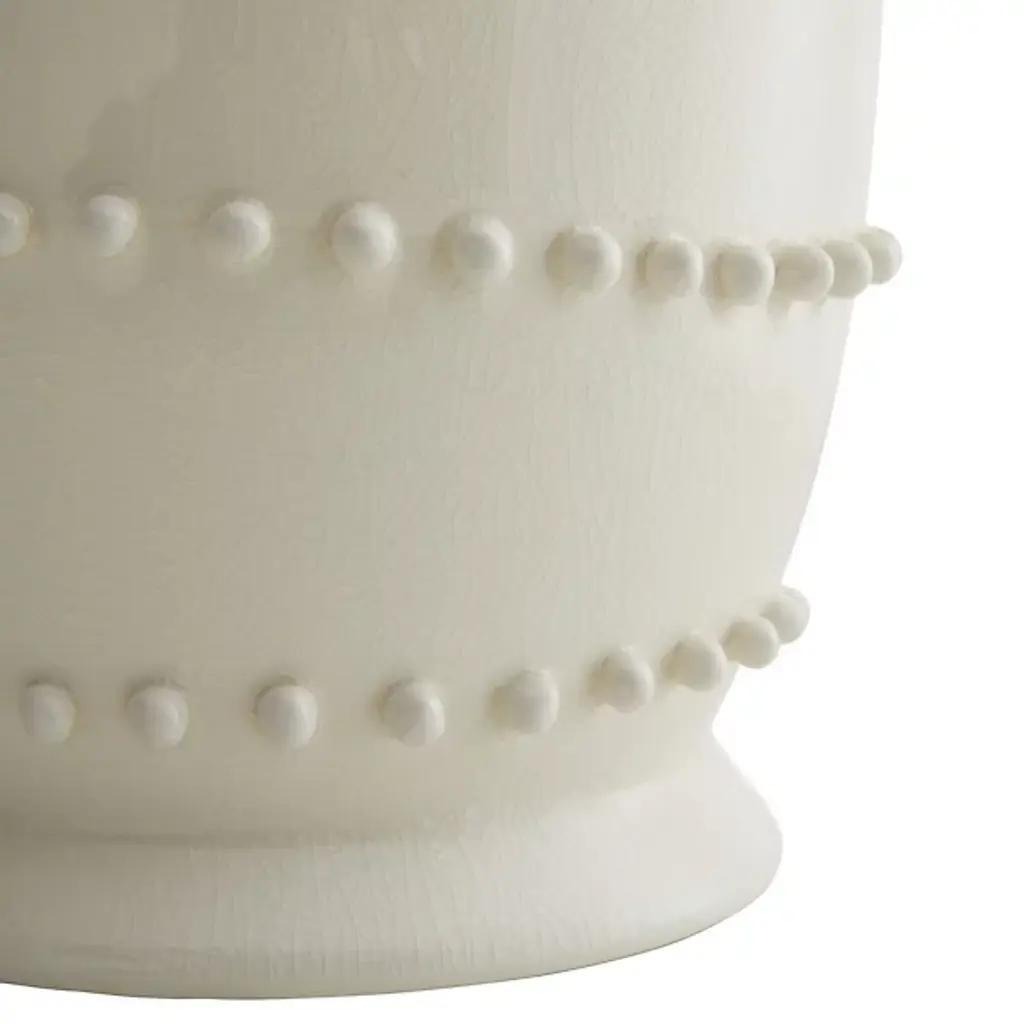 Festive, sophisticated, artful. The Spitzy Table Lamp from Arteriors animates the spaces with waves of hand-applied beads glazed in rich light. The modern design reveals itself with a chic personality. It strikes a gorgeous figure with a curvy body made from crackled ceramic. The deep texture of the ceramic creates a fascinating background for the soft beads arranged on top. These beads flow naturally around and catch fine highlights when the piece is on. A spacious microfiber shade above disperses ample ambient light with glare-free properties.